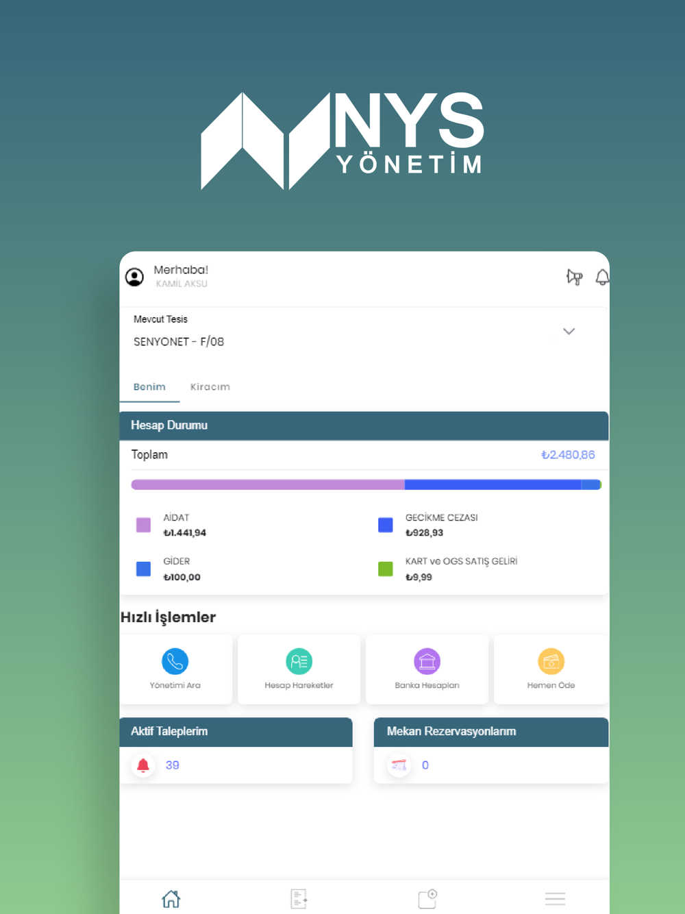 • Banka Bilgileri; Site Yönetimine ait banka hesap bilgilerini görüntüleyebilme.