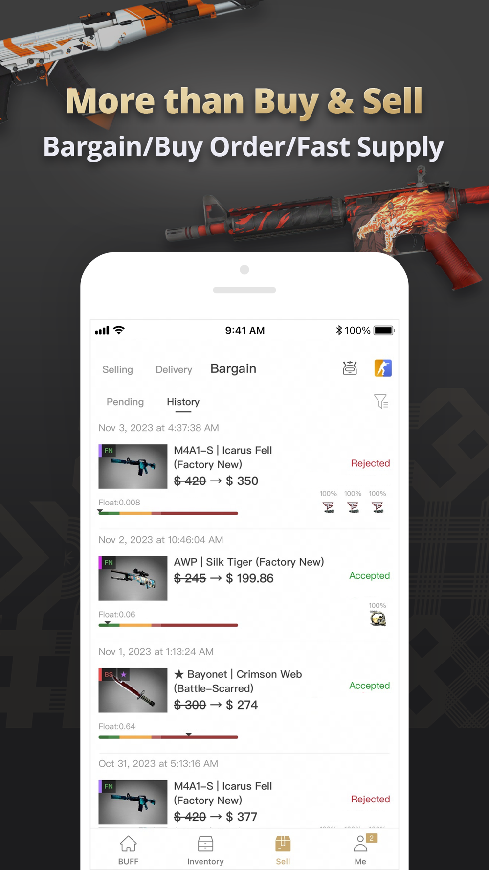 BUFF MARKET, a mighty P2P skins trading platform, is an international product designed by BUFF team, the same team as the well-known buff163. Through BUFF MARKET, you can trade skins with millions of global CS:GO players.