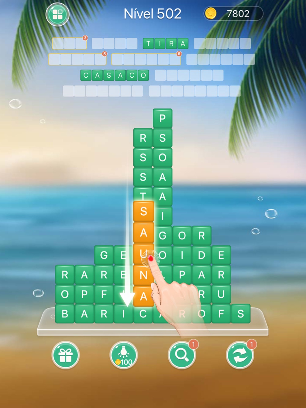 - Operação fácil: basta deslizar os dedos para eliminar as palavras.