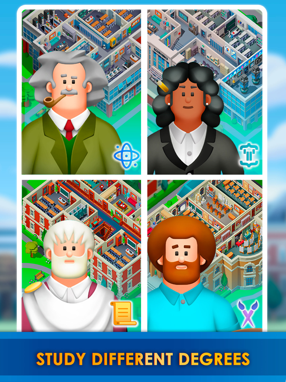 If you like management and idle games, you will enjoy University Empire Tycoon! A casual easy-to-play game where strategic decisions have to be taken to grow a campus with profitable results. Expand your premises starting from a small and modest campus and unlock visible progress in your facilities. Transform your small business into the most renowned university and become the best university manager of all time!