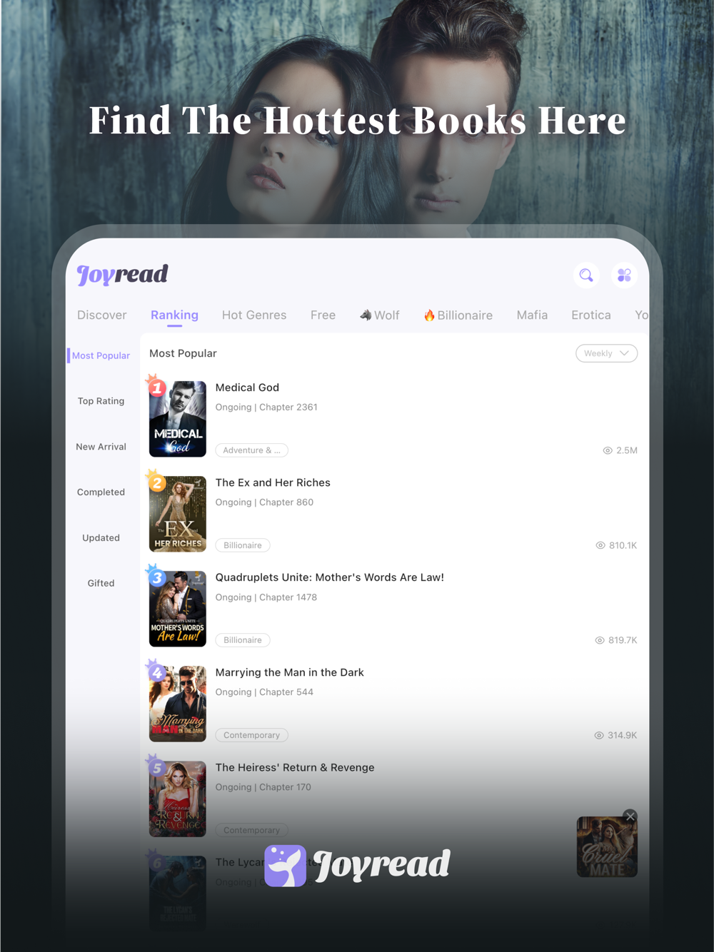 Joyread has all kinds of books loved and embraced by our readers, from Romance with CEOs to Fantasy to Paranormal.
