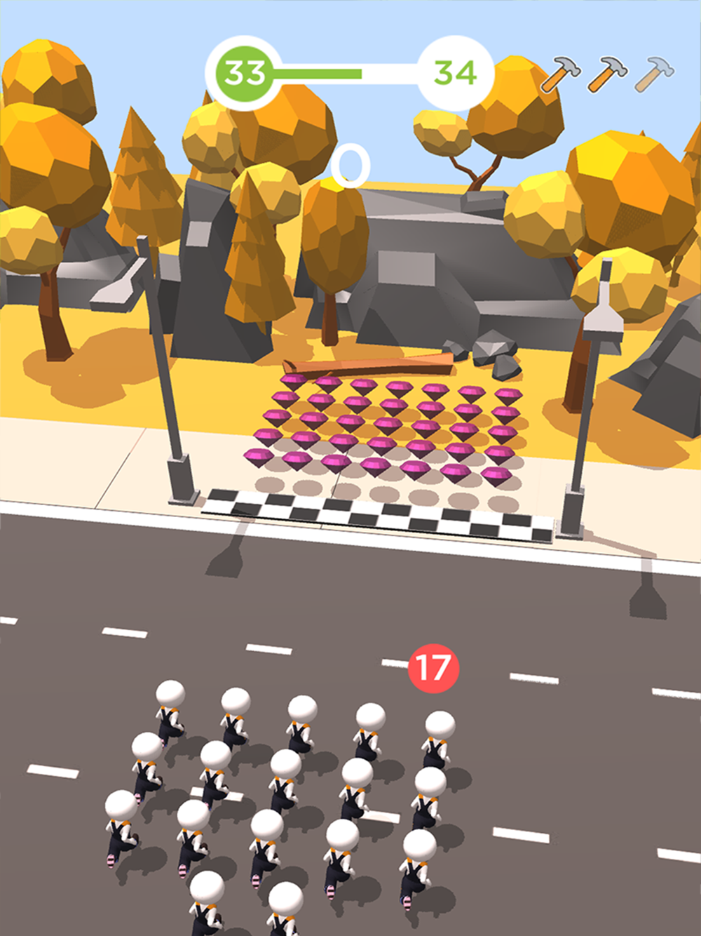 Crowd Street 3D - Controls the characters crossroad go to the finish line. You can control the character's run along to another side of the road. They are making the player feel like they're really crossed the road. With a dynamic game with fun and realistic thriller with control characters crossroad. Great graphics and physics simulation character and cars, trains that run on the road.