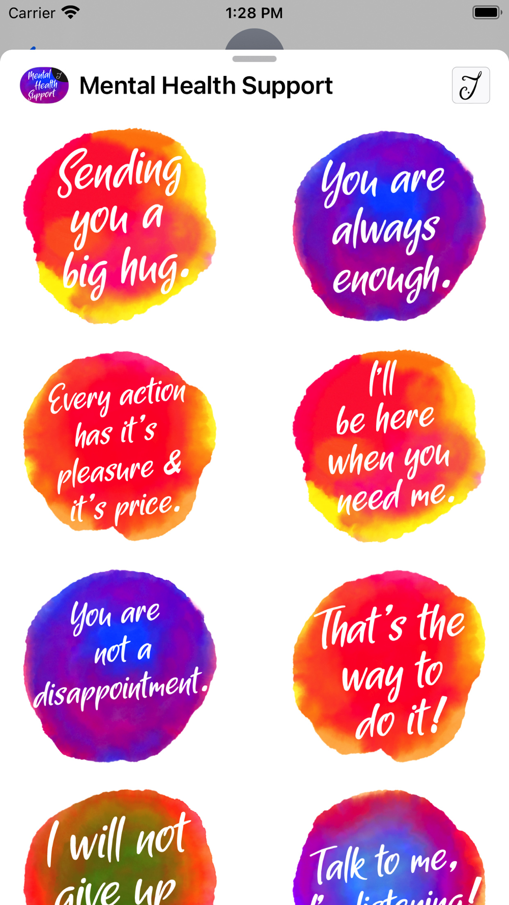 Engage with your friends or family members that you know is going through a tough time, depression and anxiety in their life. Let them know that you care for them. This iMessage Sticker pack shows stickers that you can easily use if you don't know what to say.