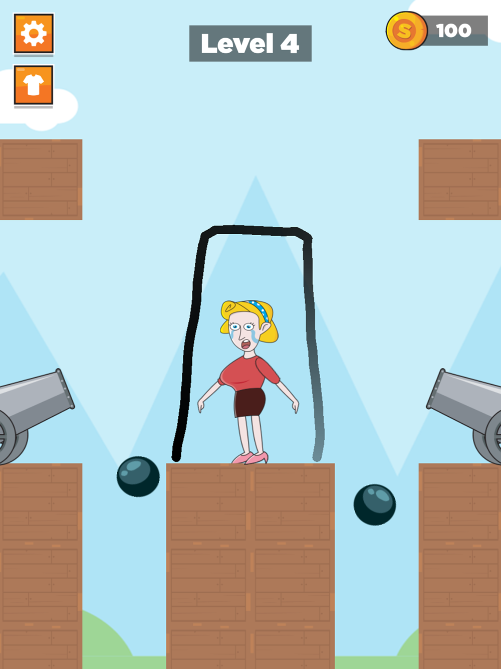 Draw a wall or any lines that make the girl safe. Save girl like save them all.
