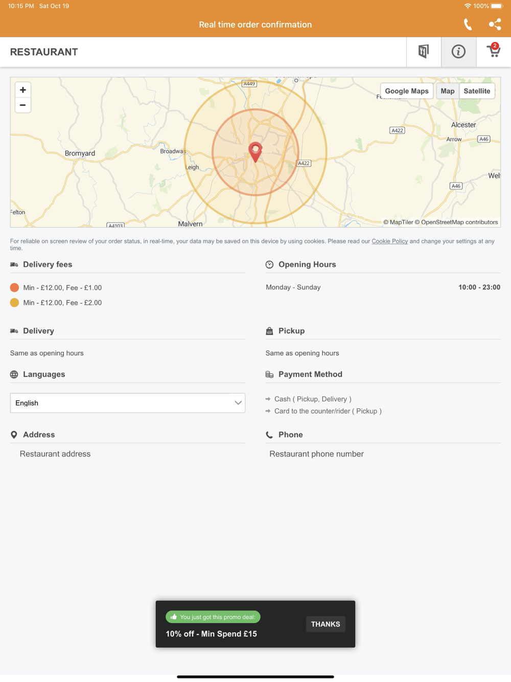 6. Get instant delivery time or collection time on screen once you submit your order.