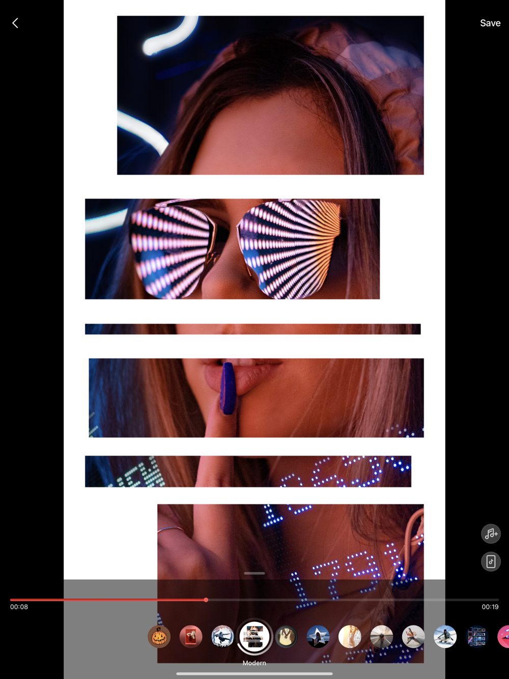 All you have to do is just pick a bunch of photos or a video on your phone and select a BeatSync template.
