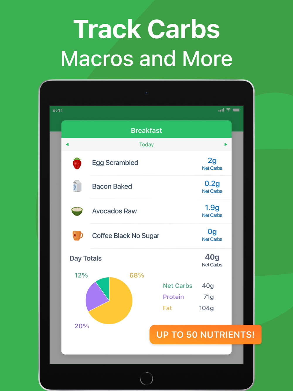• Beyond carbs - track up to 108 nutrients, more than any other app