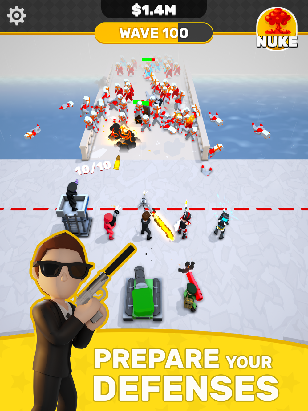 Discover new recruits to join your ranks and improve your firepower. How will you organize your troops? Pistol, Rifle, Minigun, Bomber, Grenade, Rocket Launcher, Tank, Sniper or Sharpshooter, they are all available to help you to counter the waves.