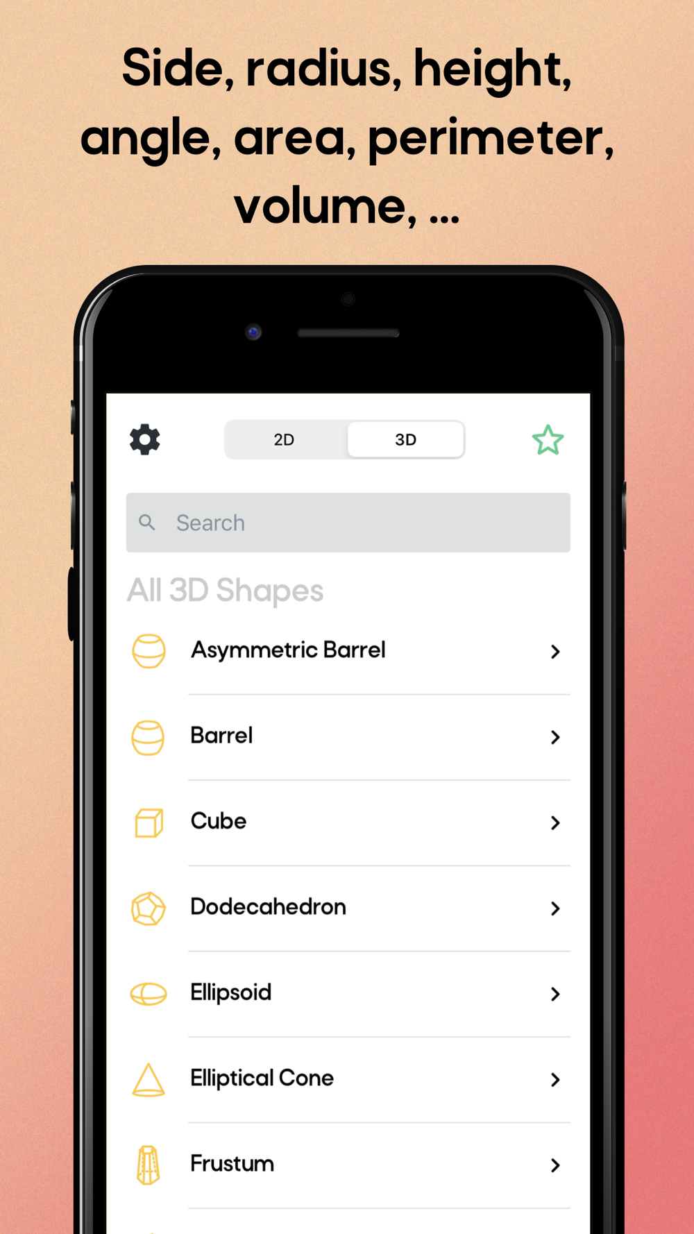 Geometry Solver Pro helps you to do calculations with more than 50 shapes, 2D and 3D!
