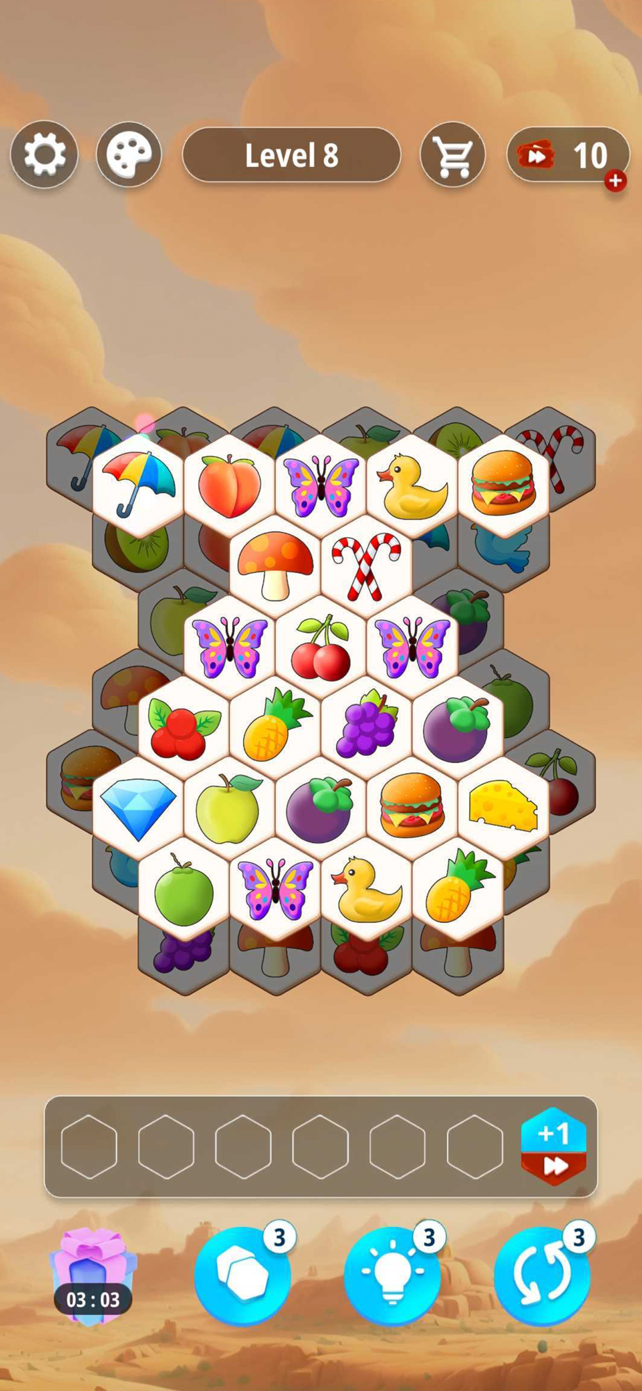 Welcome to Tile Wonder, the ultimate tile match-2 puzzle game that will keep you captivated for hours! Your goal is to eliminate all the tiles in each level, but with a twist – you must make groups of two hexa tiles to clear them.
