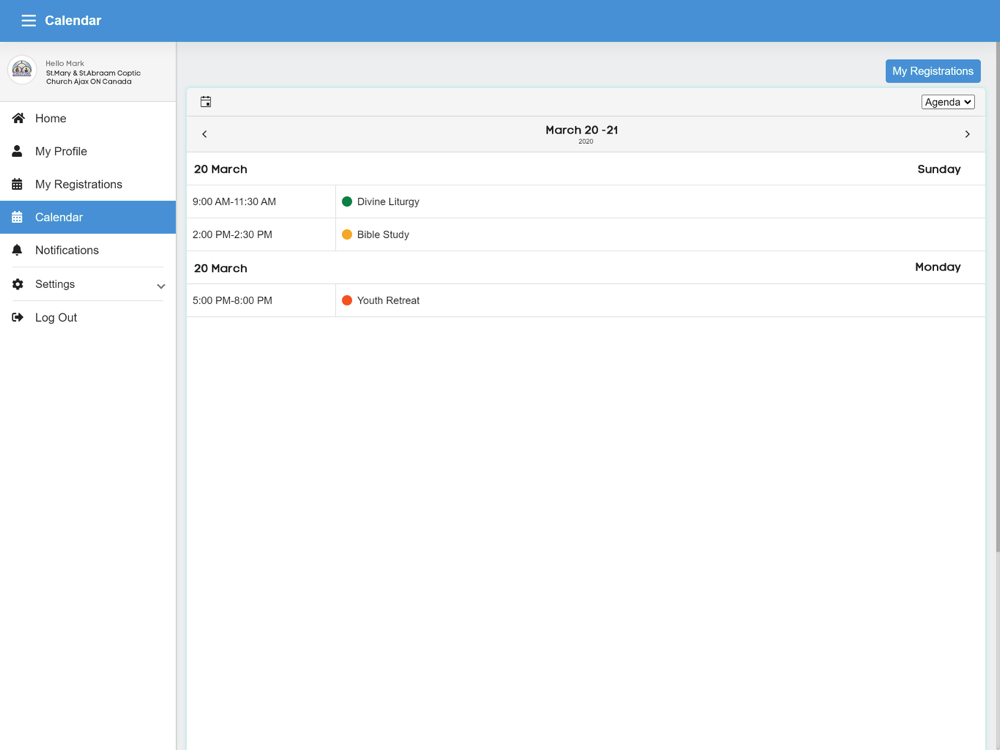 - Members will be able to reserve for various events such as Liturgies, retreats, spiritual days, trips, etc.