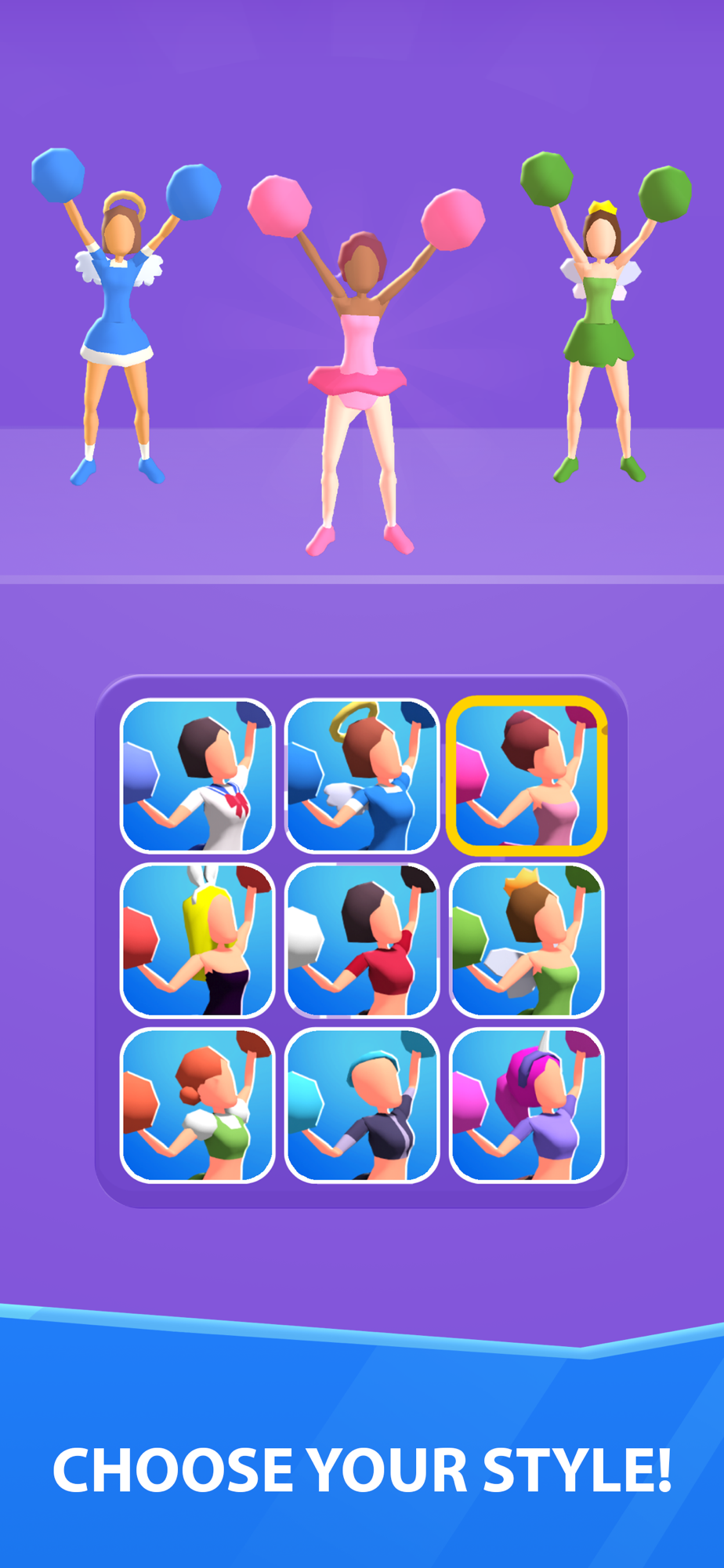 Recruit other cheerleaders, avoid obstacles and collect gems on your way to Victory!
