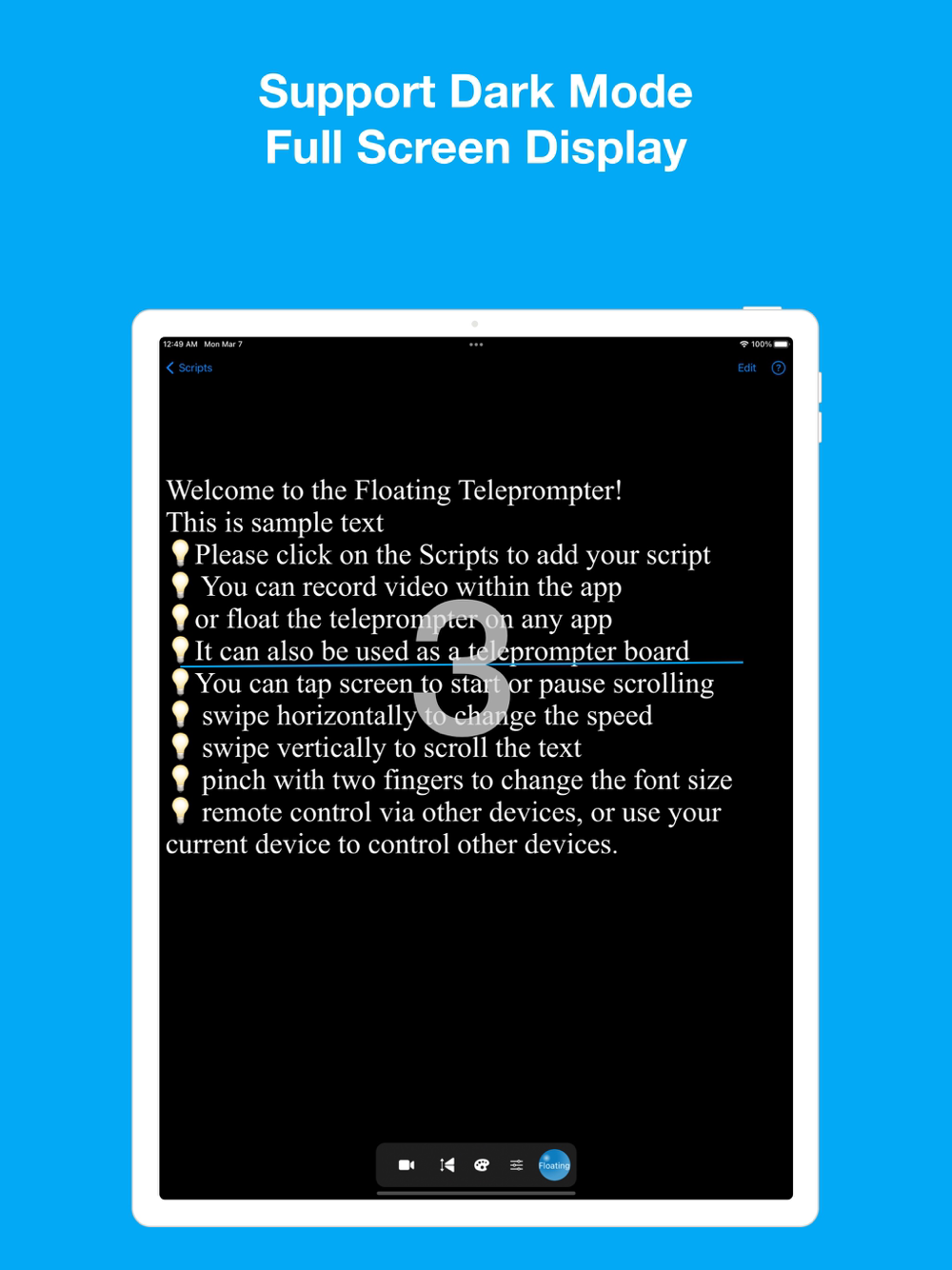 Floating Teleprompter is a handy teleprompter tool that can display Scripts at the top of any app. Convenient for vloggers, youtubers and live hosts.