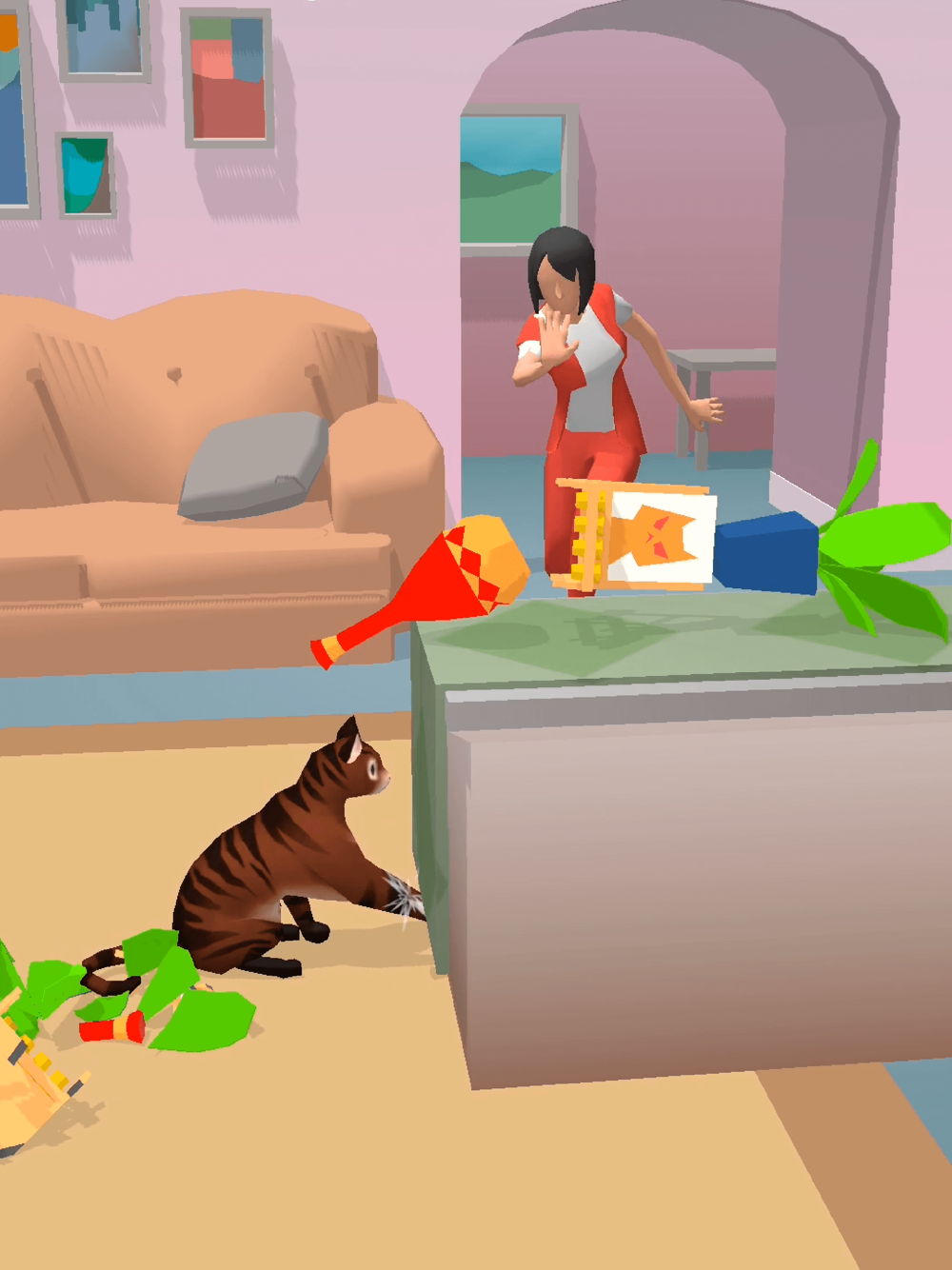 Smash precious objects like vases, house plants, and cakes to cause maximum destruction.