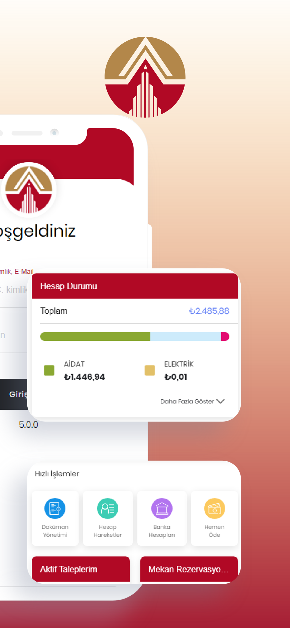 Dairenizin ve kiracılarınızın aidat, ısınma, sıcak / soğuk su, ortak alan elektrik / su ödemeleri, demirbaş ödemelerini ve finansal durumunu istediğiniz an telefonunuzdan veya tabletinizden görüntüleyebilir ve dilerseniz aidatınızı online kredi kartı / banka kartınız ile ödeyebilir, makbuz ve hesap ekstrelerinizi kolaylıkla görüntüleyebilirsiniz.