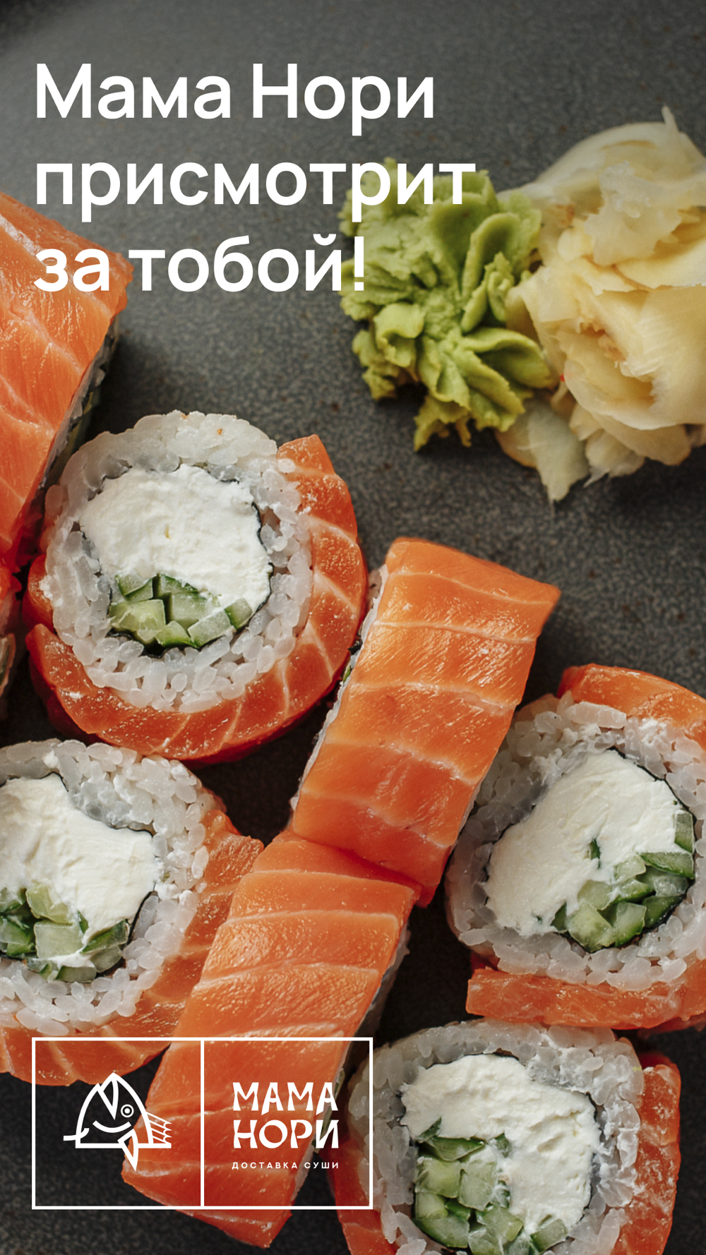 Приложение позволяет оформить заказ на доставку роллов от Мама Нори.
