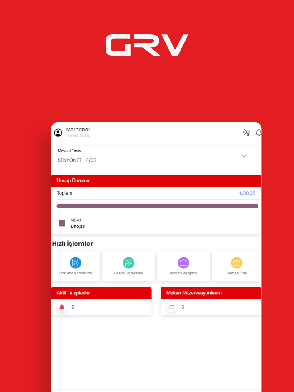 • Taleplerim; Teknik, Güvenlik, Temizlik, Bahçe Bakım vb. hizmetlerinde tespit edilen olumsuz durumların fotoğrafını çekerek iş talebi oluşturma,