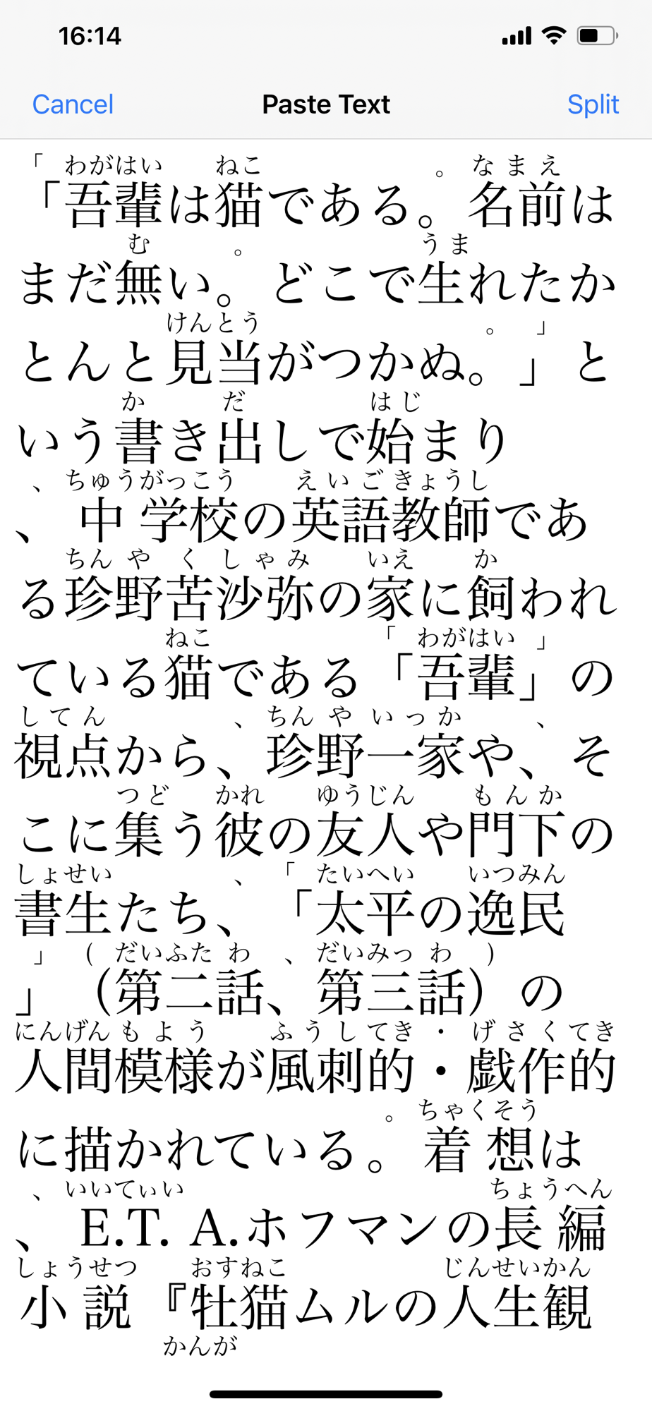 2.1.2 Paste Text: You can paste text from web browser or any text viewer, then the application will split the text to words and add the hiragana automatically.