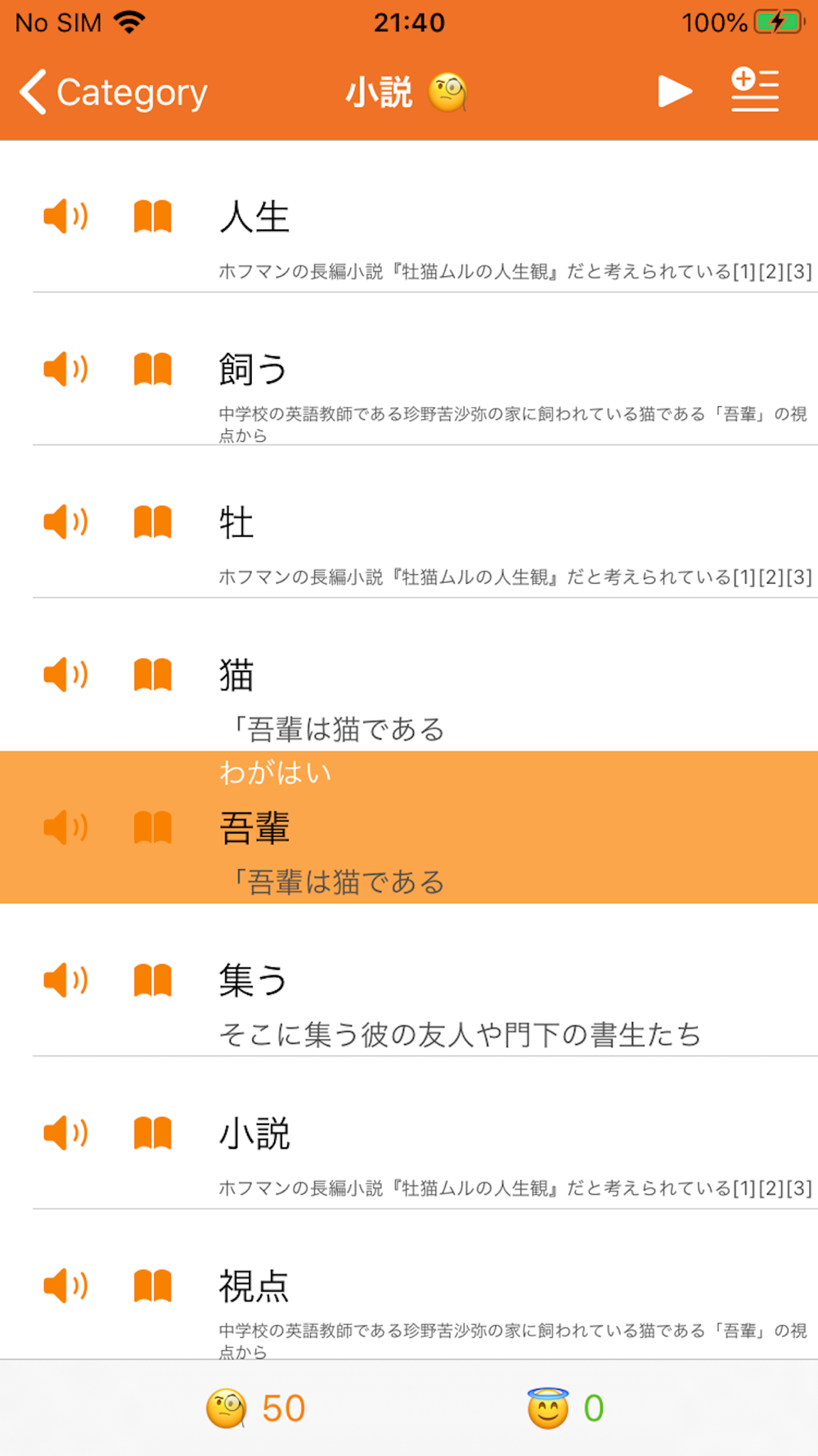 If you are not sure that you have memorized all the words, you will takes a lot of time to remember all the contents again when reviewing. This app divide words into memorizing-words and memorized-words. If you are a little confident, you can move the word to memorized-words list, and if you forget it when reviewing, you can move back it to memorizing-words list. In other words, repeat both memorizing and memorized will help you memorize more words quickly.