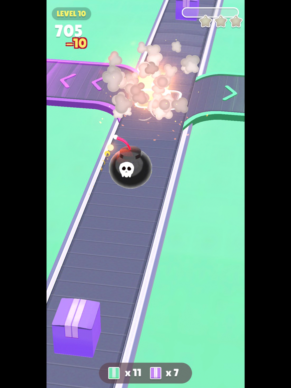 ・ Time your swipes to match the conveyor belt speed!