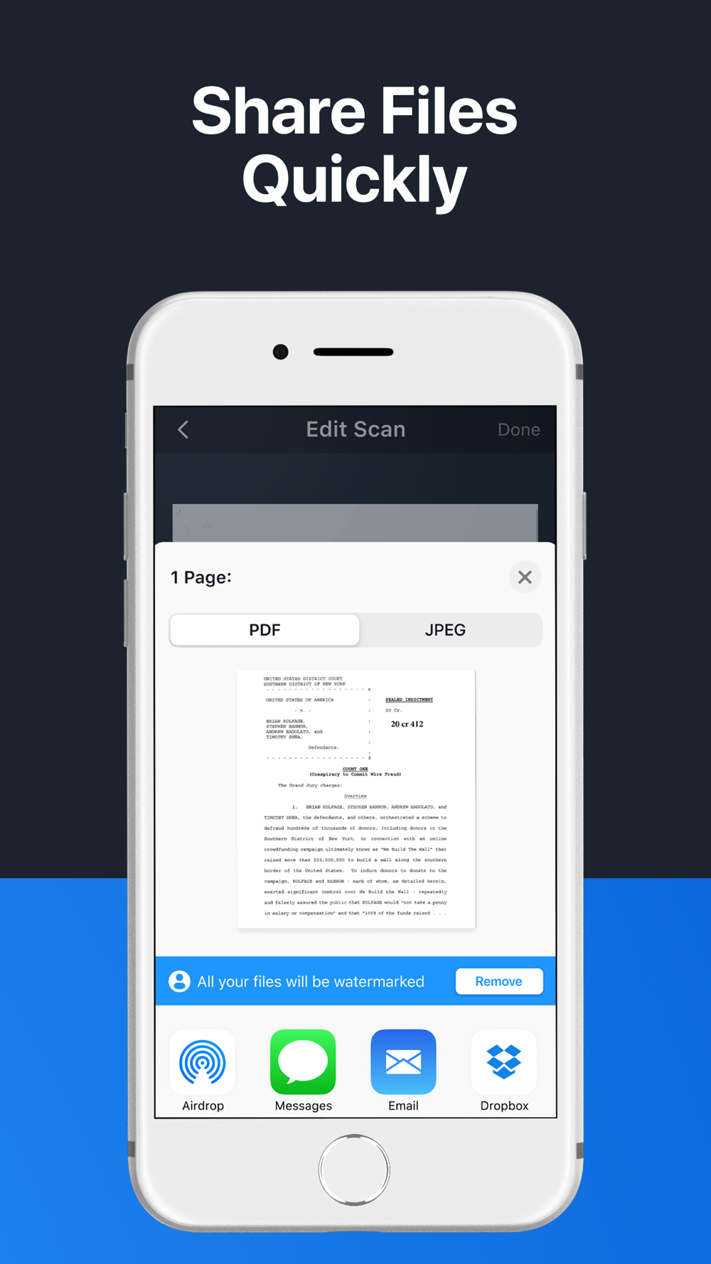 Scan, edit, sign and share any document in PDF or JPEG. With our scanner you don’t need an Internet connection as all scans are stored locally on your device.