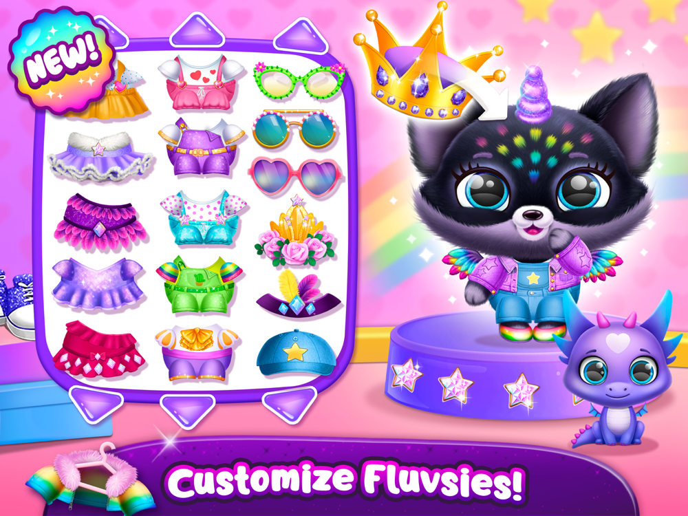 Dress up your cute Fluvsies in adorable clothes! Turn Fluvsies into the most stylish little pets! Explore a huge variety of clothing - dresses, costumes, accessories!