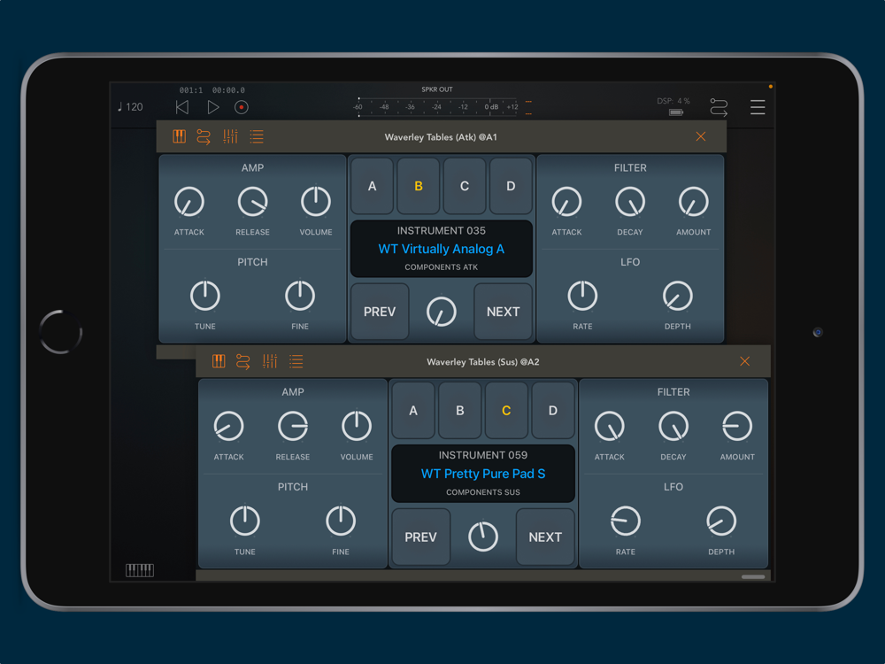 (*) Please note to mix and match components, you need to create multiple instances of Waverley Tables in your AU host. This is described in more detail in the user guide accessible from the main Waverley Tables app.