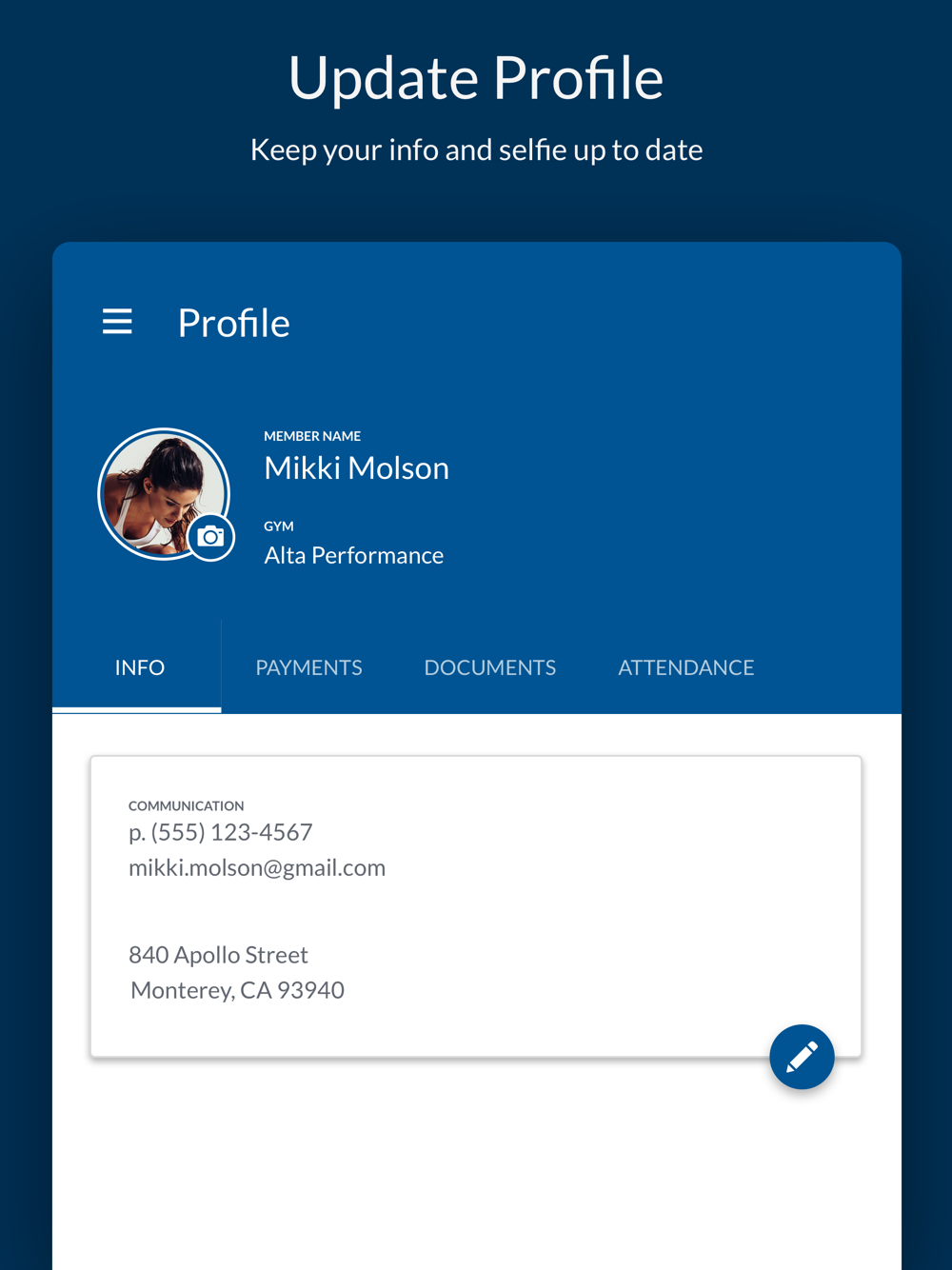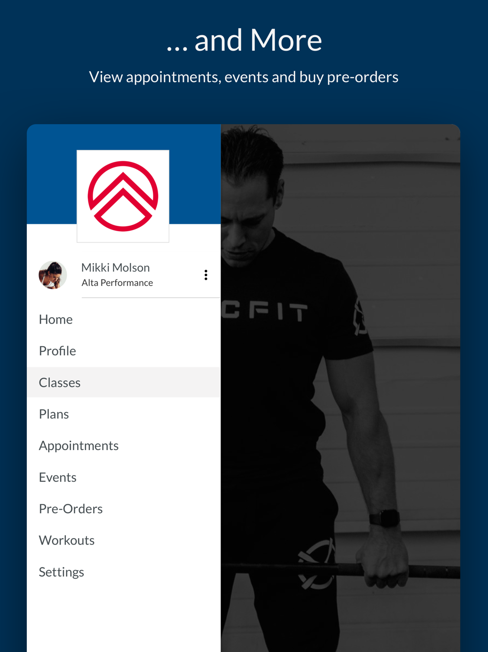 For members of Alta Performance to reserve their place in a class, sign up for gym events, and general account management like updating headshots and credit card on file.
