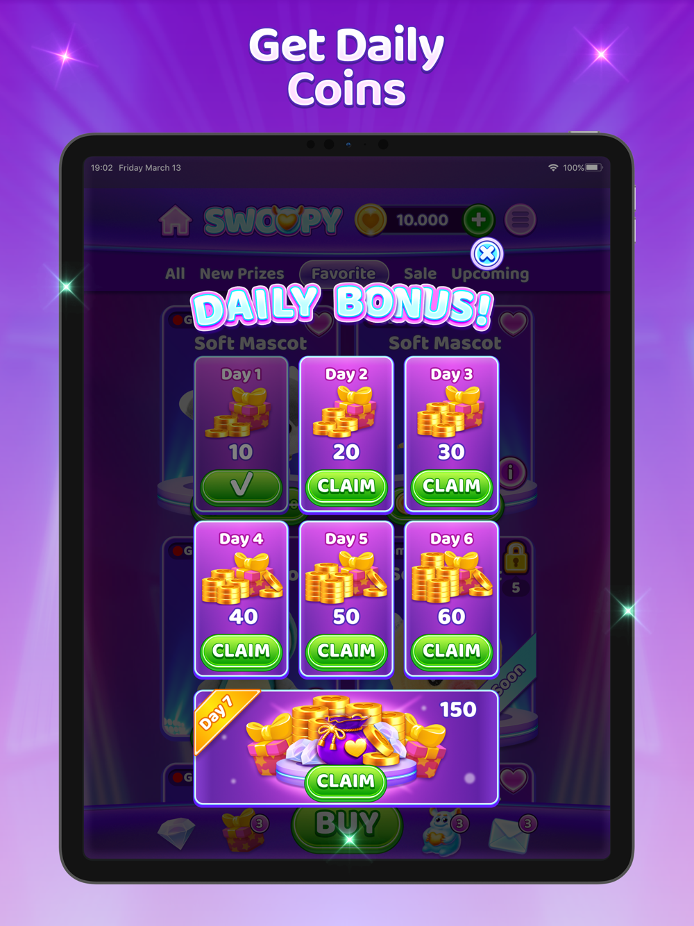 Subscription pricing and terms: Swoopy offers an auto-renewing weekly subscription at $4.99/week to provide vip-membership and free daily coins during subscription period.