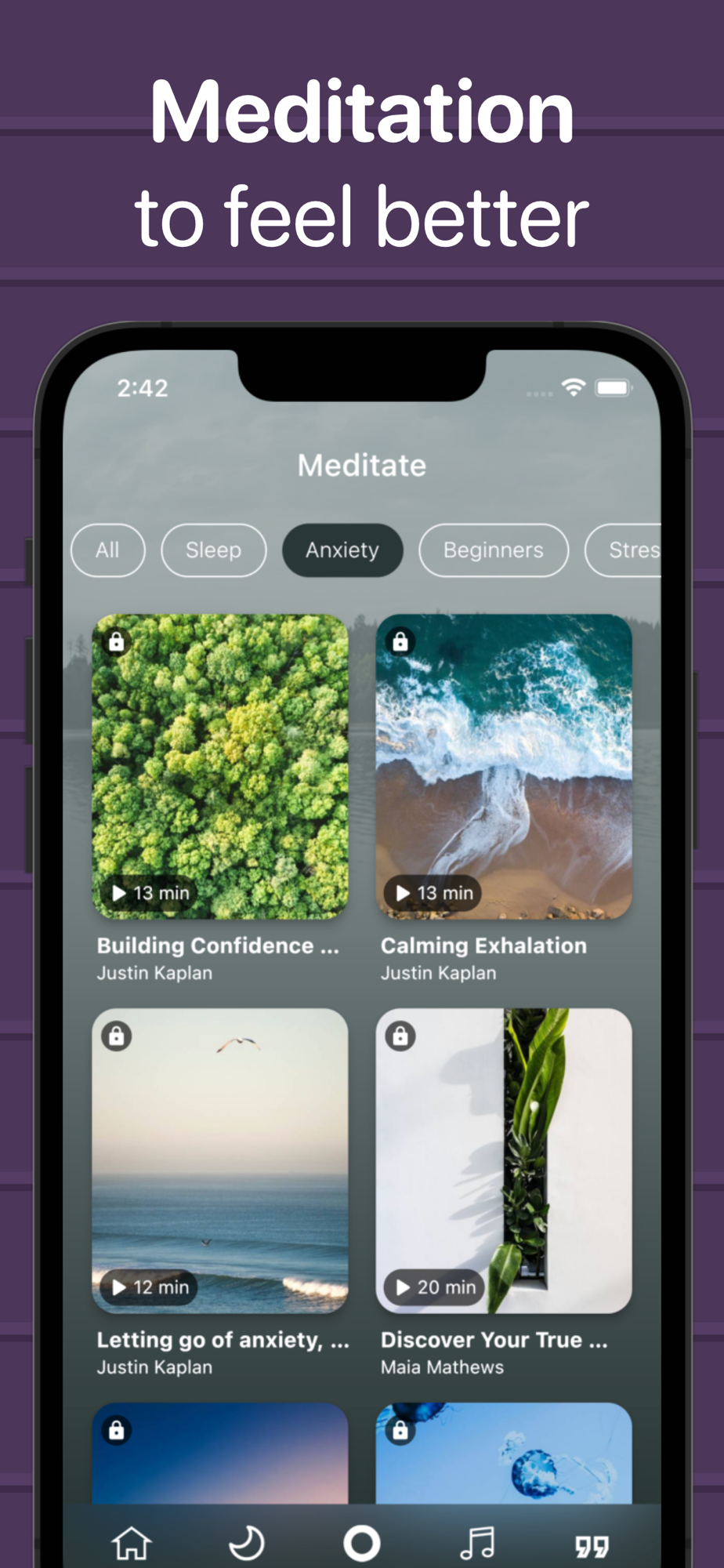 - Find your perfect guided meditation, from a relaxing break to a full-length practice session, to get tuned to your inner space.