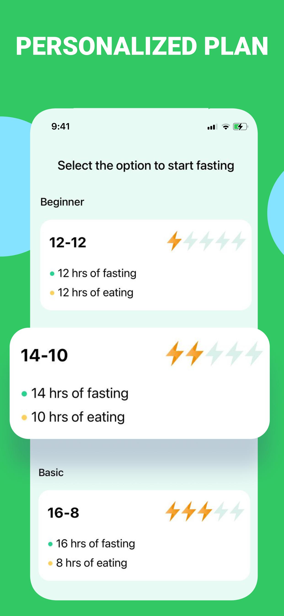 Other plans, including 20:4, 24h, and 36h, are for an advanced fasting experience and ensure greater fat burn, metabolism boost, and anti-aging effects.