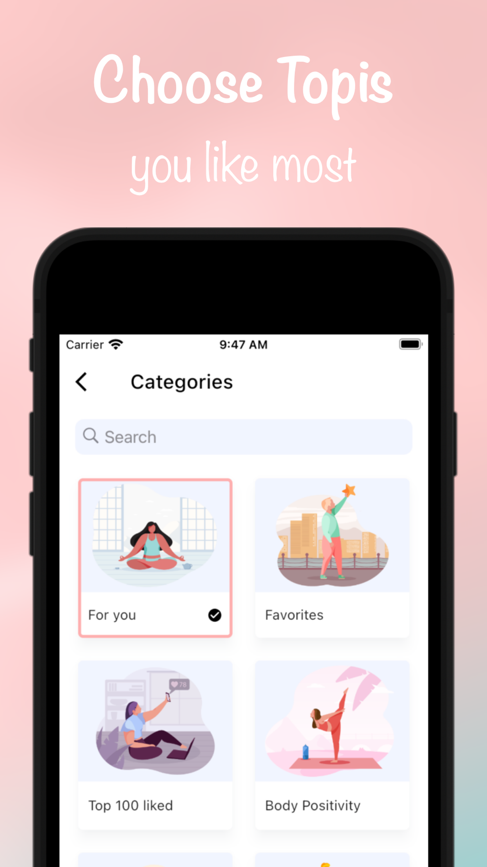 - Categories for you to read any time: search by the category that fits your mood best. You can choose the category of affirmations you want or just scroll through our feed to find inspiration when you need it most!