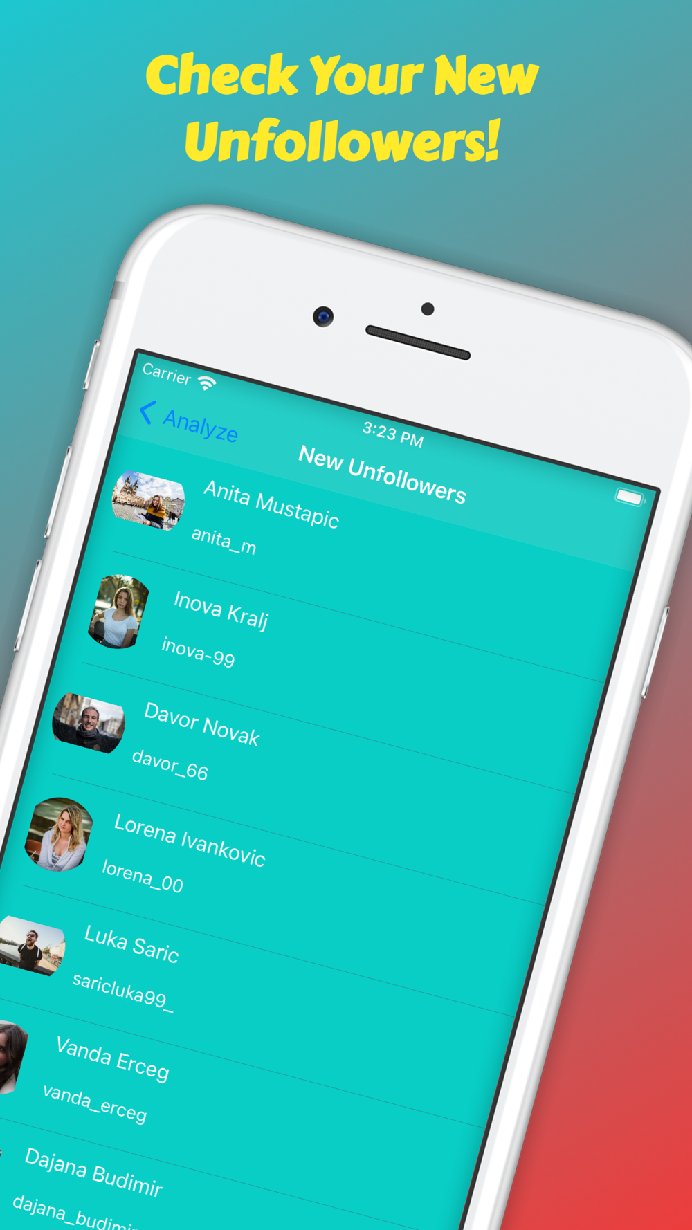 • After you force to close this app and launch it again, it will tell you how many followers you’ve gained or lost since your last visit into the app.