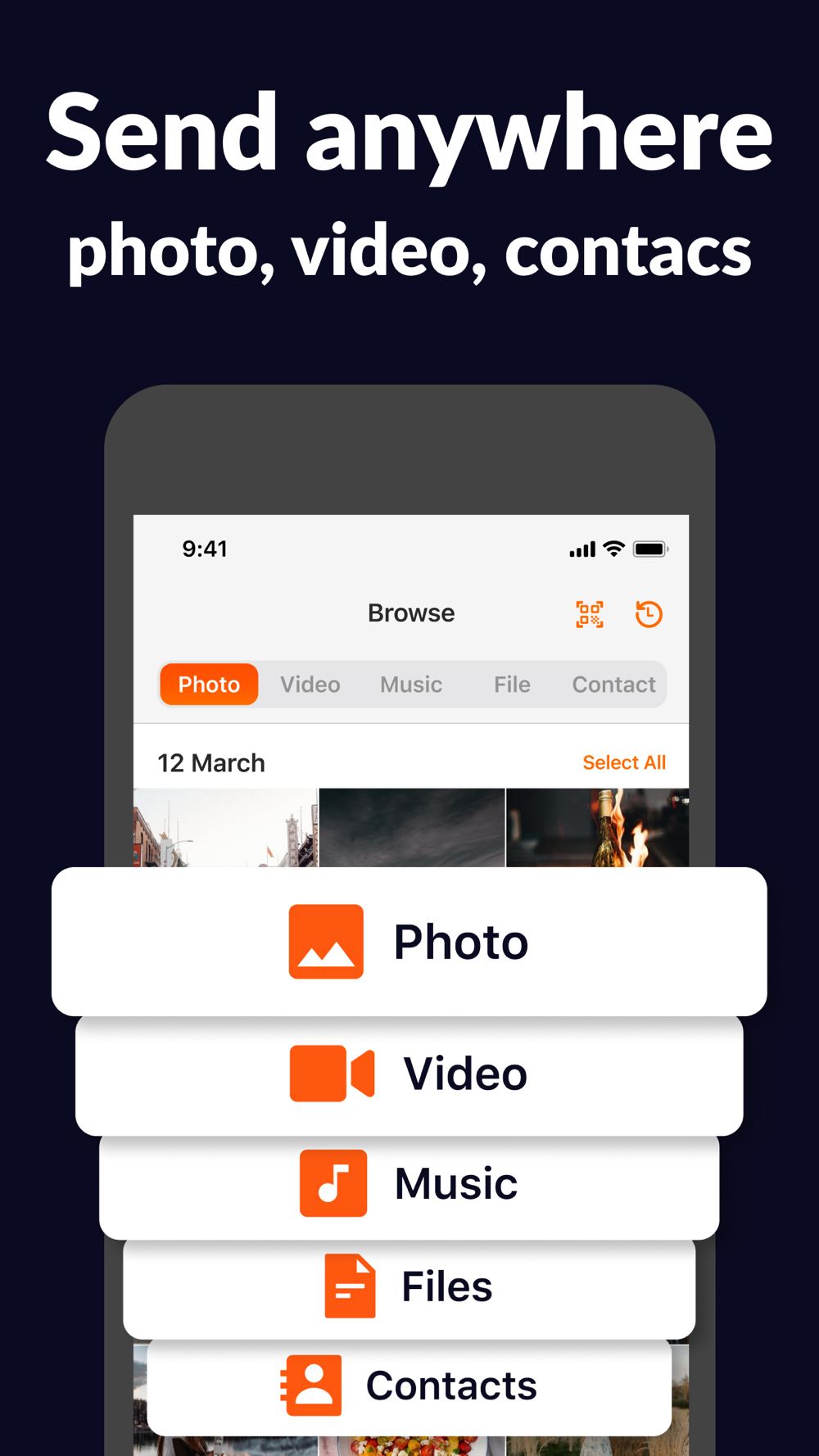 With File Transfer, it takes just a couple of taps to transfer gigabytes of photos between different operating systems using a browser. You no longer need to use data cables - share files wirelessly at a high speed and save your time.