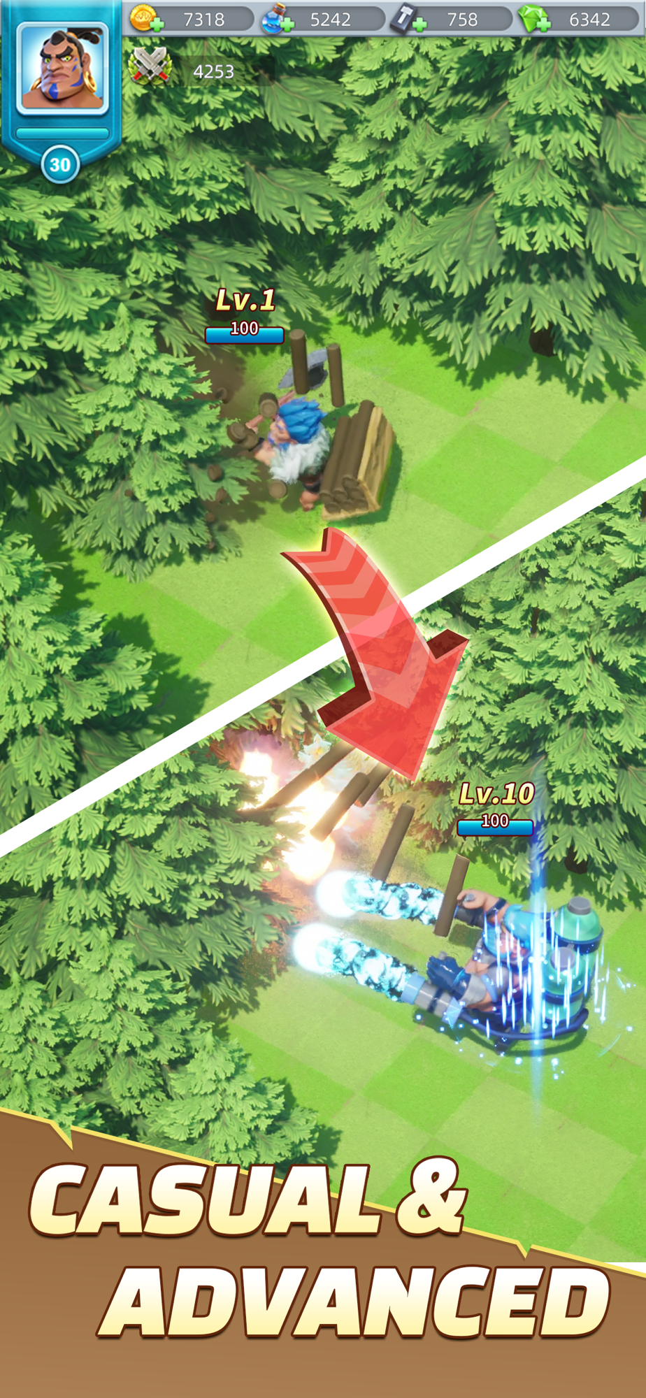 Whether it's building or troop unit, just merge and upgrade. No more tedious waiting. Experience the exciting clan cultivation!