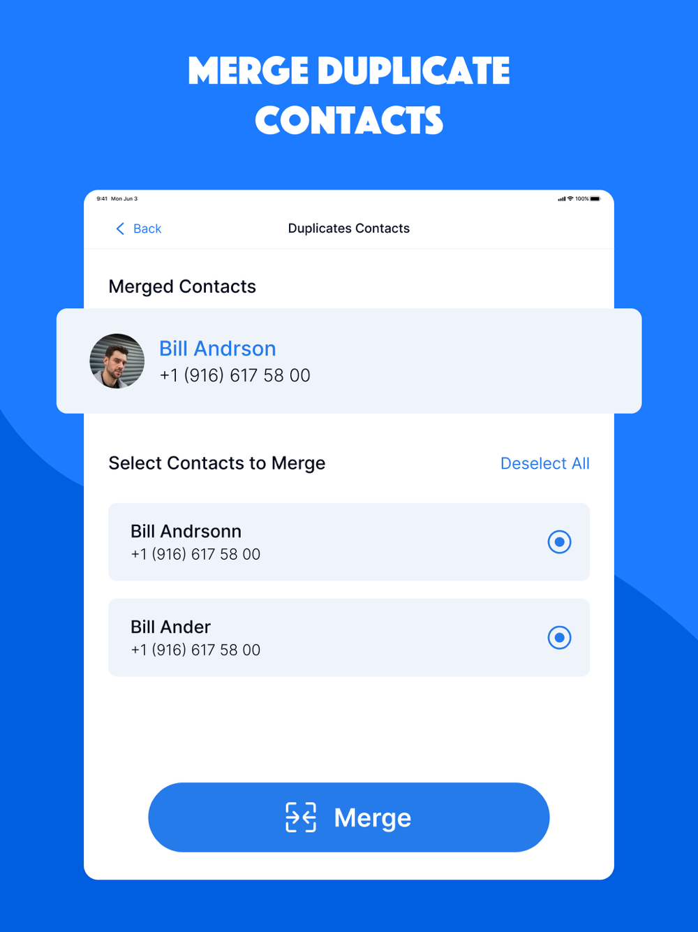 You can merge, back up, and remove contacts with CleanX app. Quickly find out duplicate contacts and merge with one tap. Turn on auto back up feature to automatically backup contacts regularly. Access and manage all your contacts backup history easily, every single file is stored safely. You can also add a Contacts Widget to call your favorite contacts directly from your Home Screen.