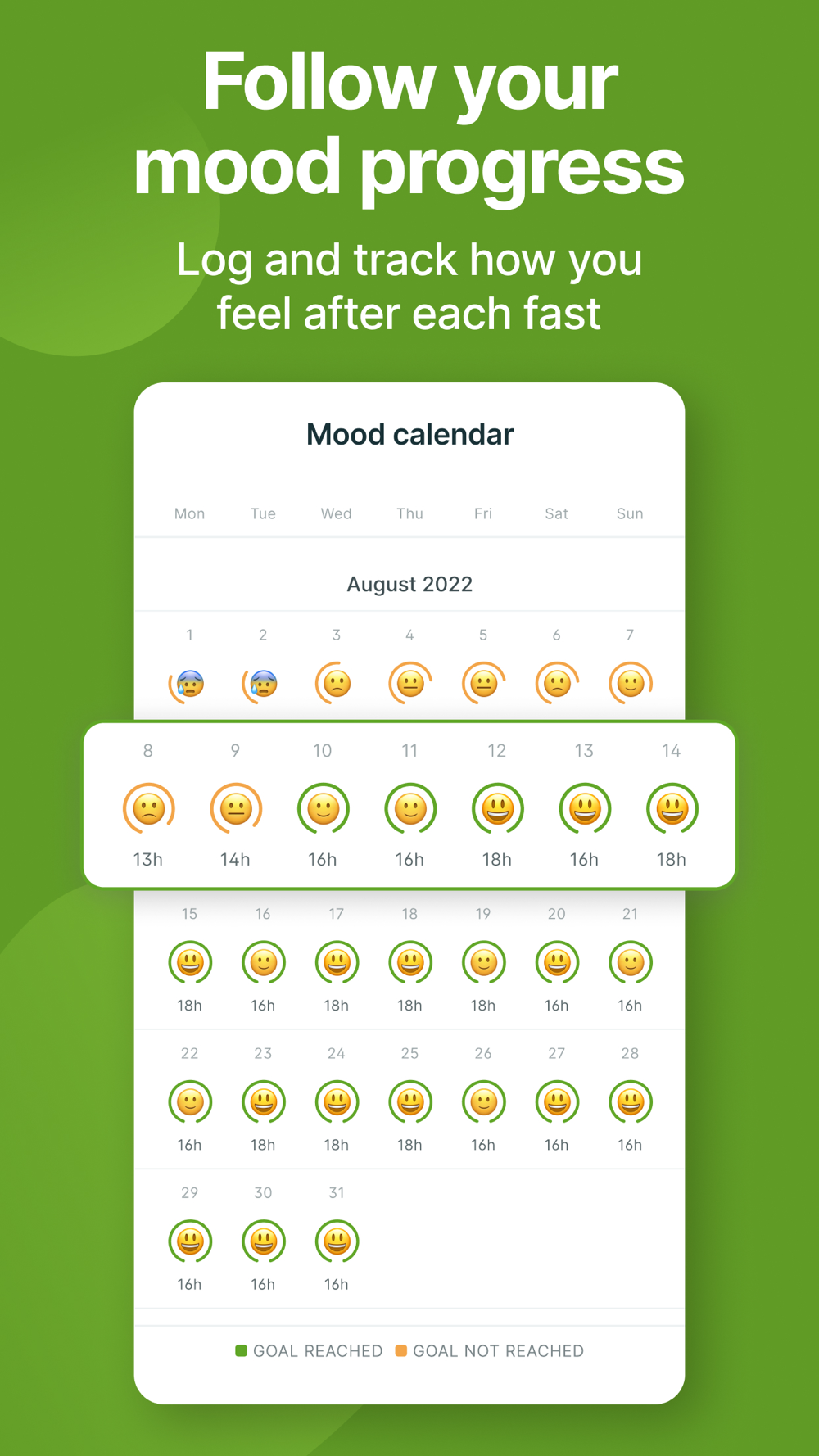 JOURNAL - Reflect on how you feel during your fasts. We’ll graph your moods so you can track trends over time.