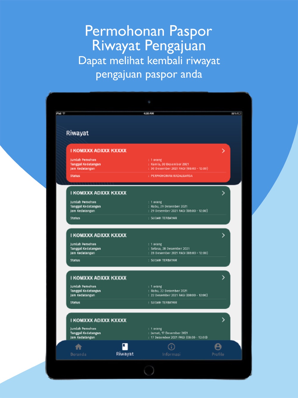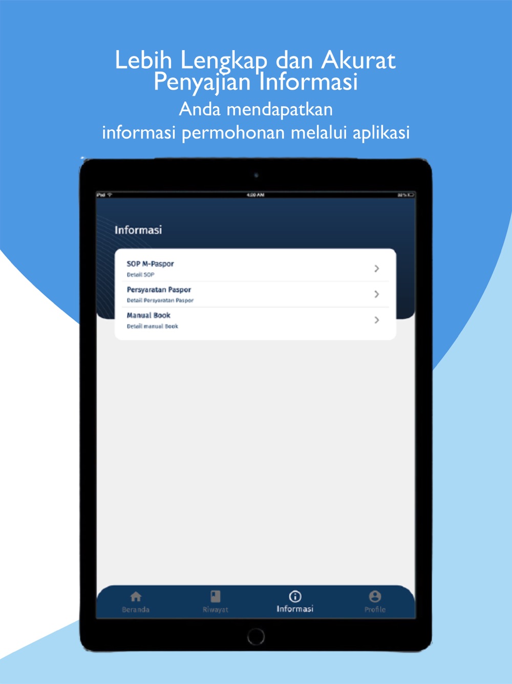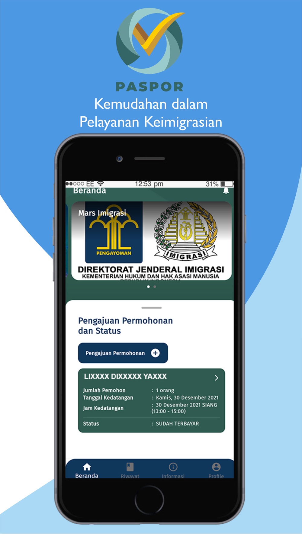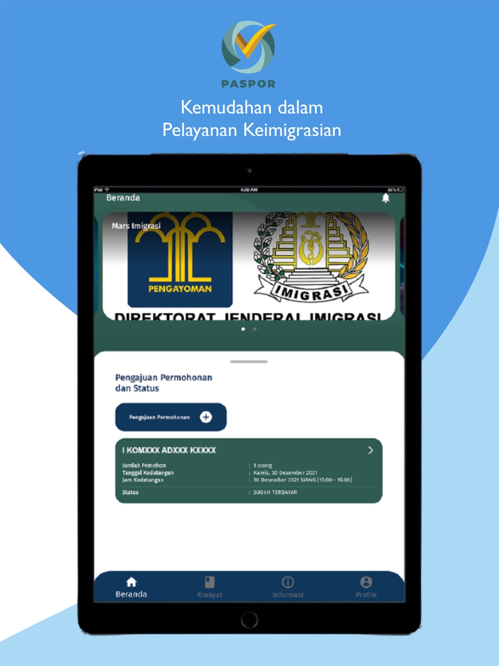 Aplikasi M-Paspor merupakan aplikasi yang dapat digunakan masyarakat untuk melakukan pengajuan permohonan paspor baru dan penggantian paspor secara online resmi dari Direktorat Jenderal Imigrasi, Kementerian Hukum dan Hak Asasi Manusia Republik Indonesia. Urus paspor sekarang sudah semakin mudah, Sahabat Mido! Aplikasi M-Paspor ini akan memudahkan kamu dalam pengurusan paspor, kamu tinggal lengkapi dan upload dokumen persyaratan melalui handphone, bayar biaya permohonan paspornya, lalu datang ke kantor imigrasi pilihan kamu untuk wawancara dan perekaman data biometrik. Mudah bukan? Ayo unduh dan install Aplikasi M-Paspor dan rasakan kemudahannya!