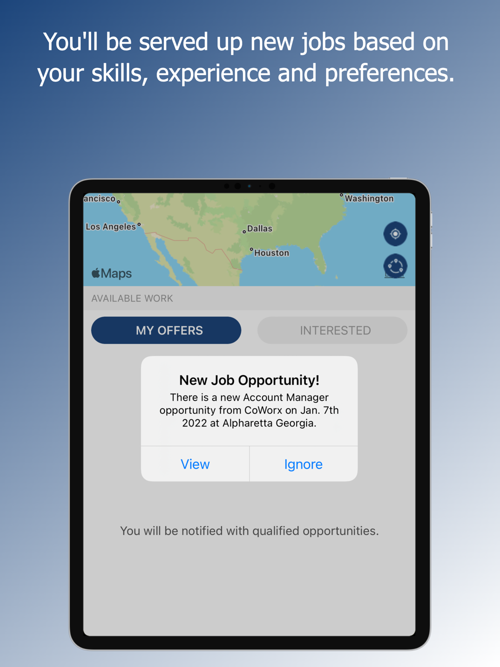 Jobs On Demand allows you to easily find your next job. When using the app, you will be served up jobs based on your skills, experience and preferences. You can communicate your interest 24/7 and no longer have to wait to contact a recruiter during business hours. You can easily synch your work schedule with your personal calendar or use the schedule in the Jobs On Demand app.