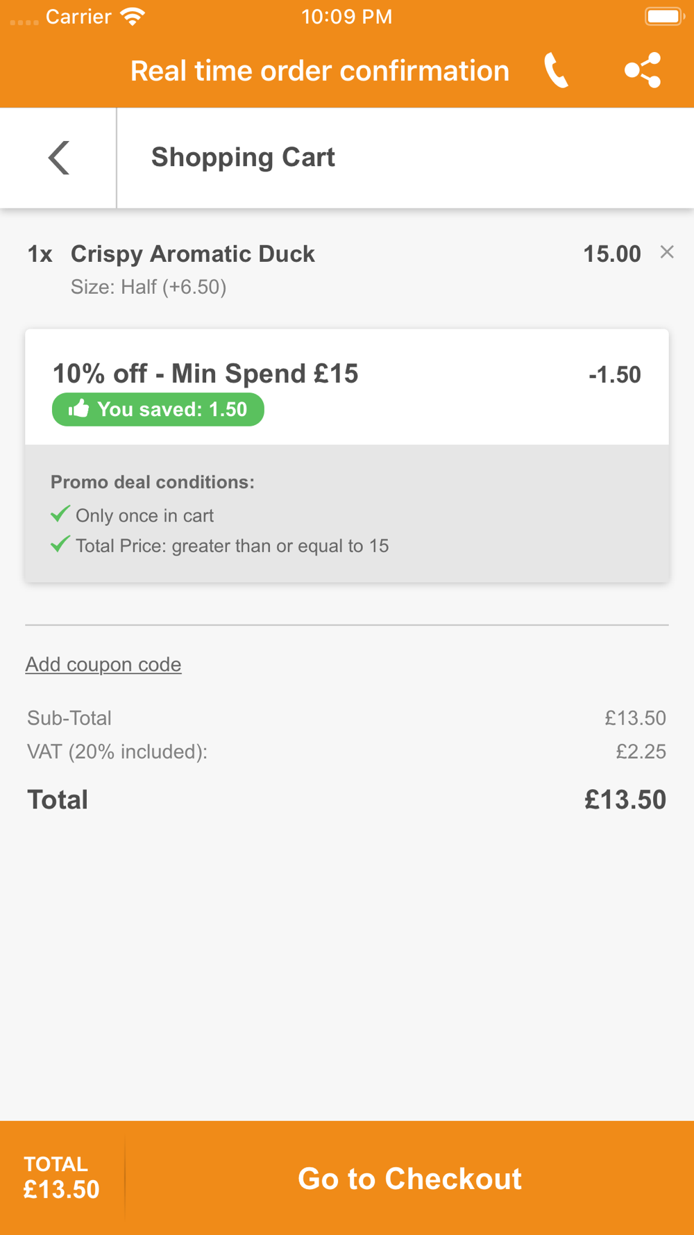 6. Get instant delivery time or collection time on screen once you submit your order.