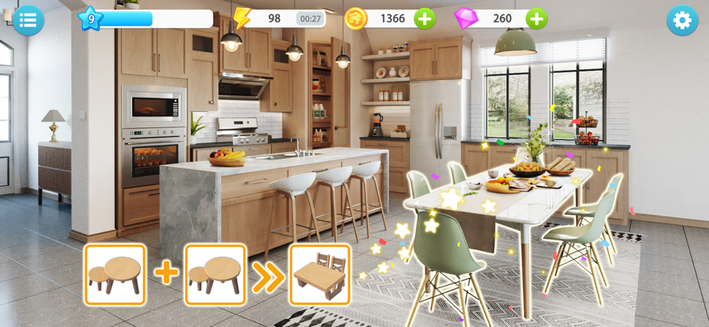 Be the famous house decorator and do the mansion makeover&home renovation! Decorate from a simple living room to the luxurious mansion and assemble from a simple tool to the exquisite furniture. Merge the various of tools and complete the order! The more order you completed and the more exquisite furnitures you can get! Use the equipment and furniture which you assembled to renovate the home you live! Do the best house design and show it to your friends!