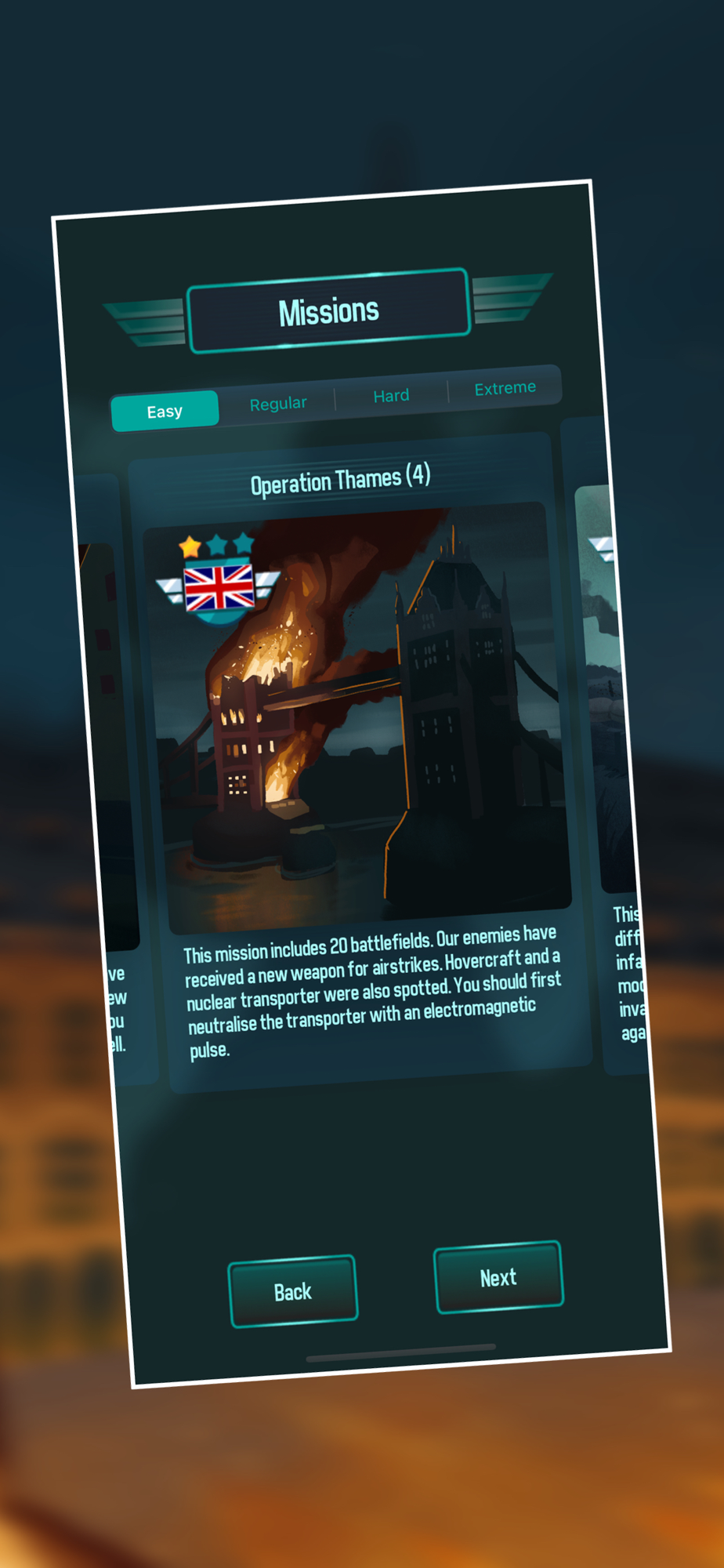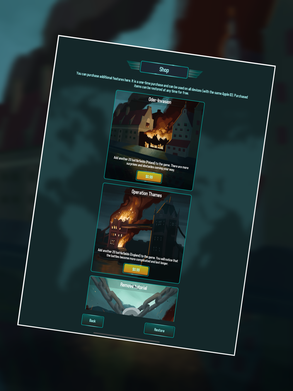 Battle Alliance will also tie you up for a while! Each card contains a well thought-out tactical chess board, which you should carefully examine before you set up your game. The wide range of defense systems as well as the maps with different areas and geological conditions that can be used in different ways for your own purposes make for an entertaining confrontation, in both the short and long term. Expansion card packages are also available and more are being planned. More than 60 extra playing fields can already be used in addition to the standard. This remains the only in-app purchase, and only as an option for avid gamers.