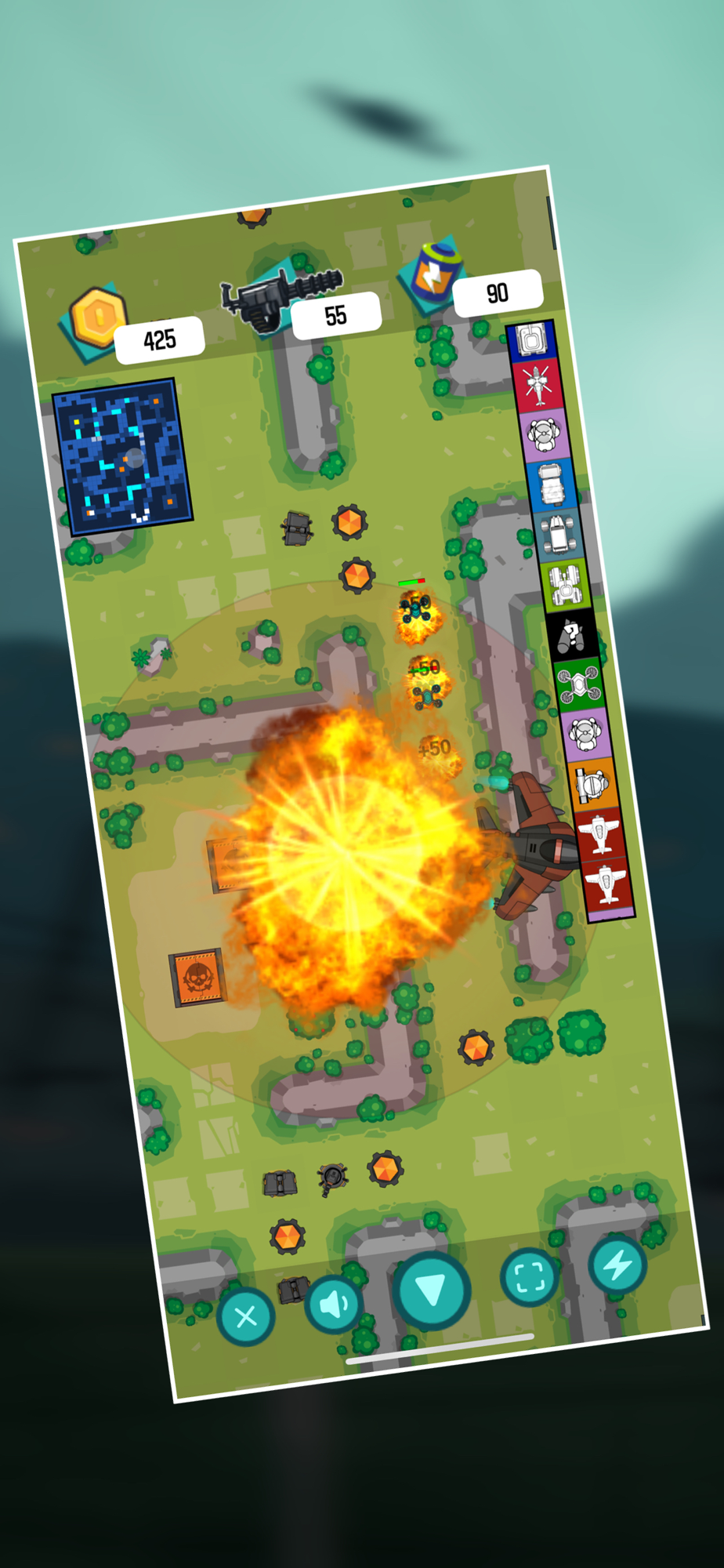 Blow up the attackers with a powerful defense! Upgrade your weapons, plan your strategy and get ready for action! Brute strength conflicts are announced again and again in spurts!