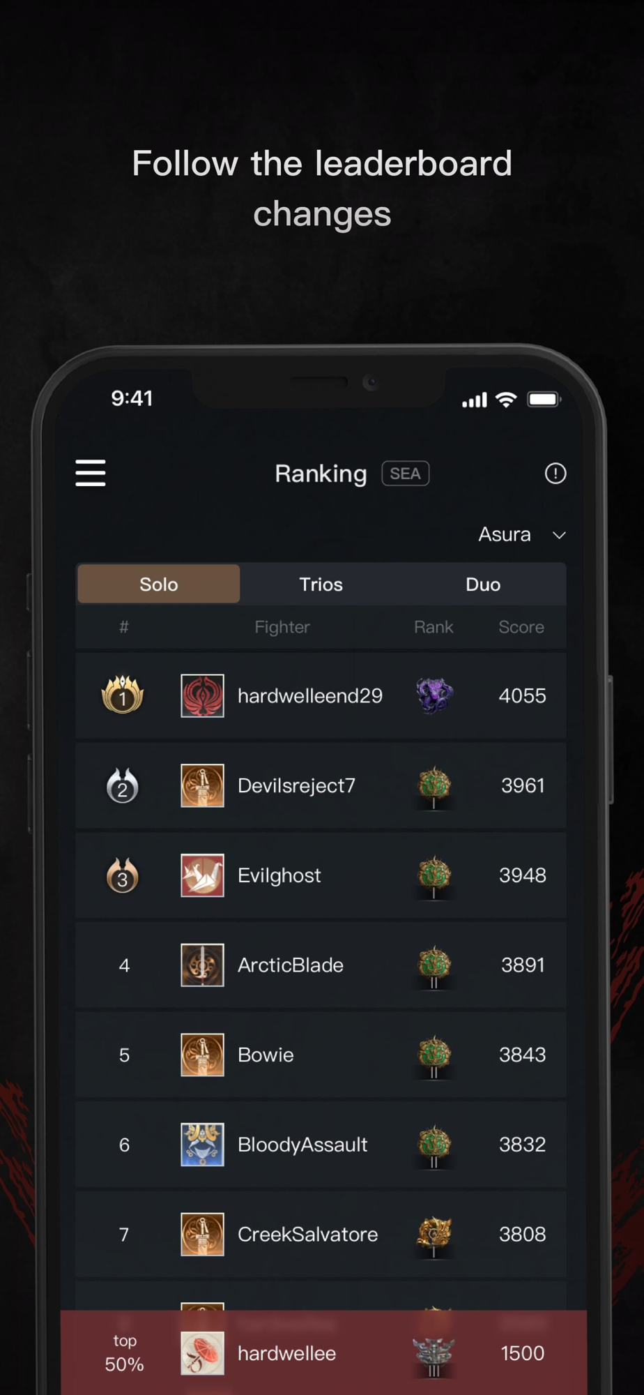 Battle Stats—Analyze your historical data, see details from recent matches, and commonly-used weapons and heroes too. Give yourself a competitive edge to help you reach Asura Rank that much sooner!