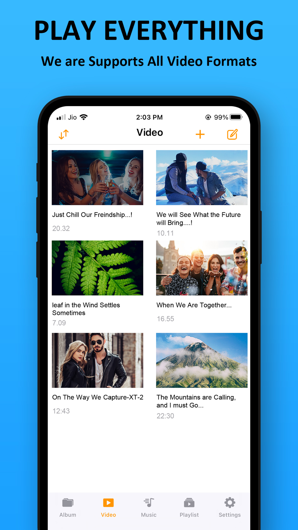 Video Player is support all types of video format like MKV,AVI,MP4,3GP,MPEG.