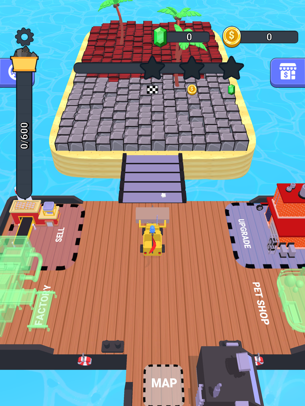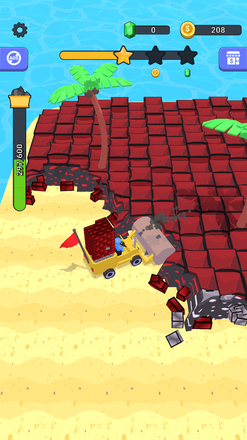 There are different types of islands you can explore, the further you go the more rare ores you get. Try to upgrade your truck to be more powerful!