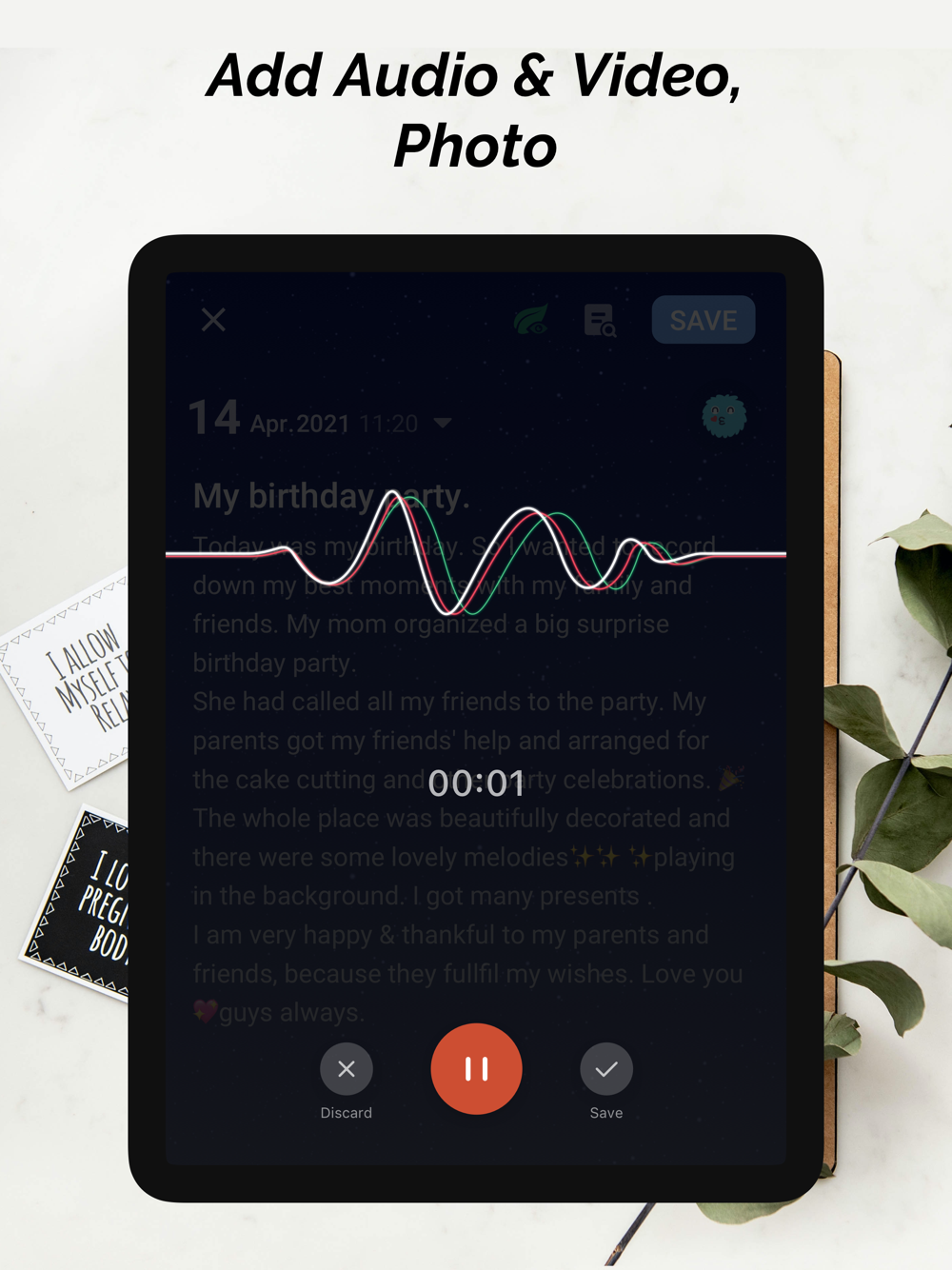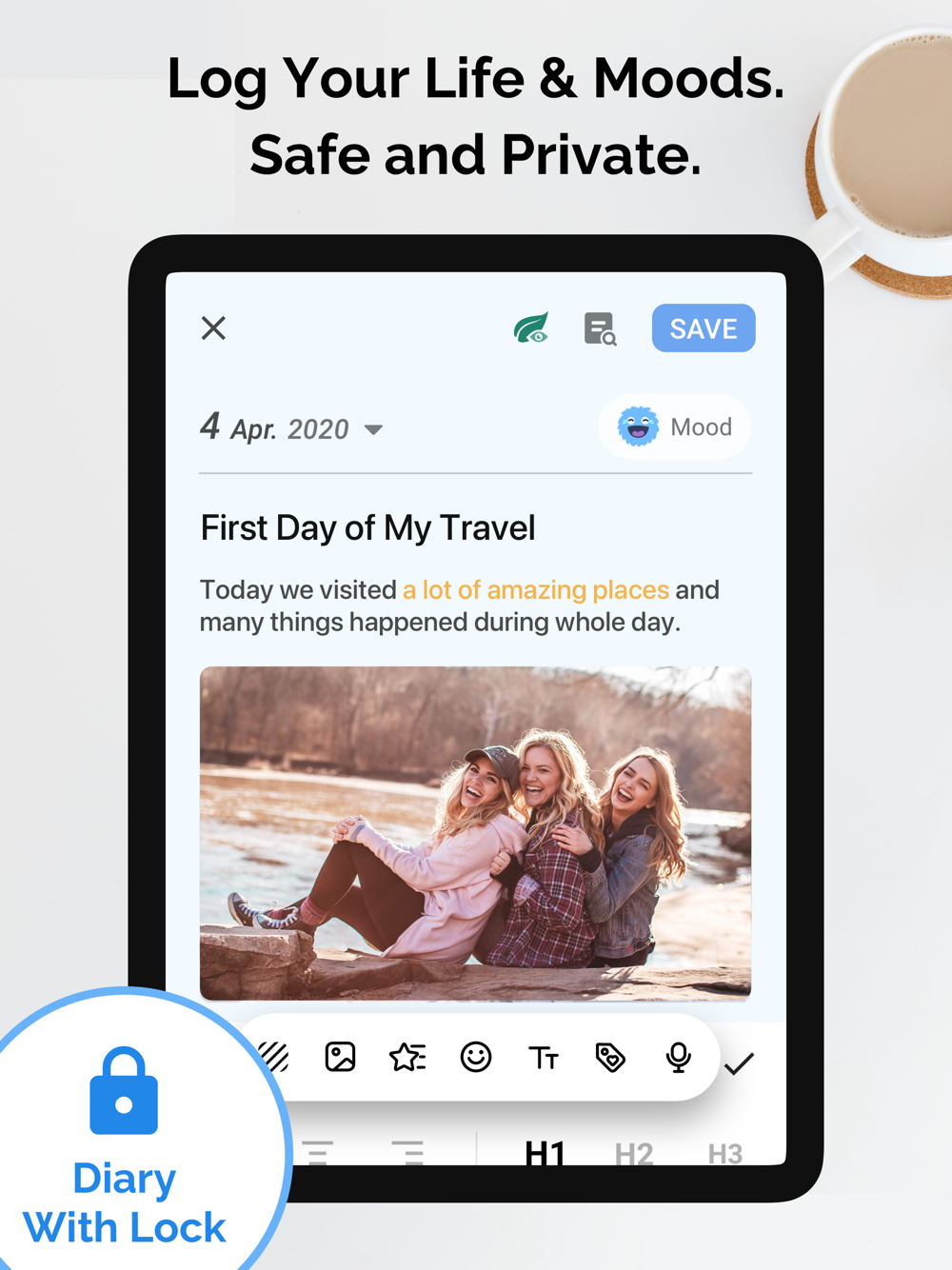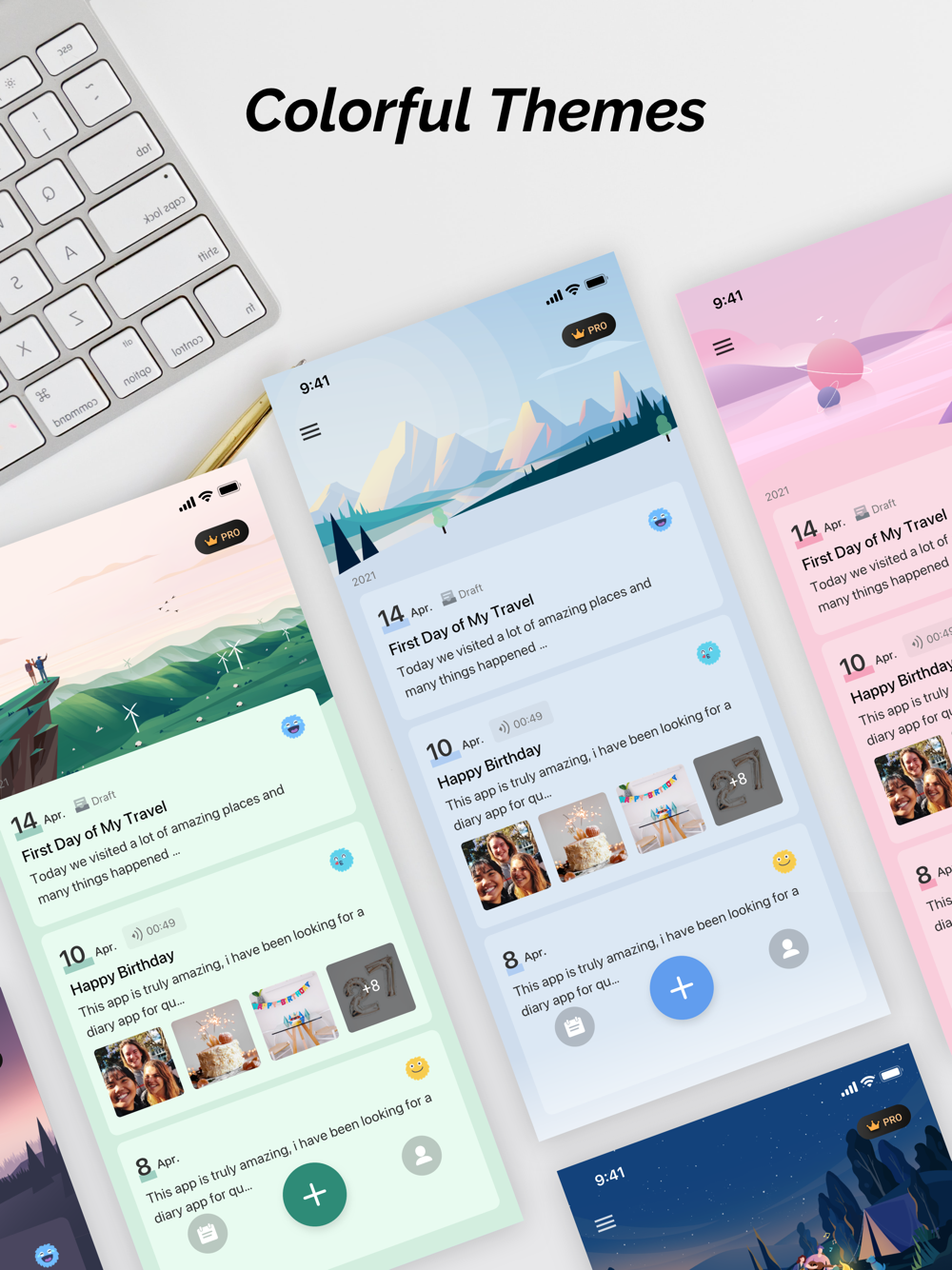 * Enjoy the Diary illustrated themes. Whether it’s a travel journal, health journal, girl diary, or mood tracker diary, there will always be a theme you like (Some of them are Premium)