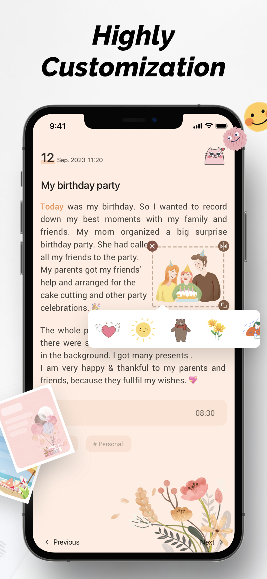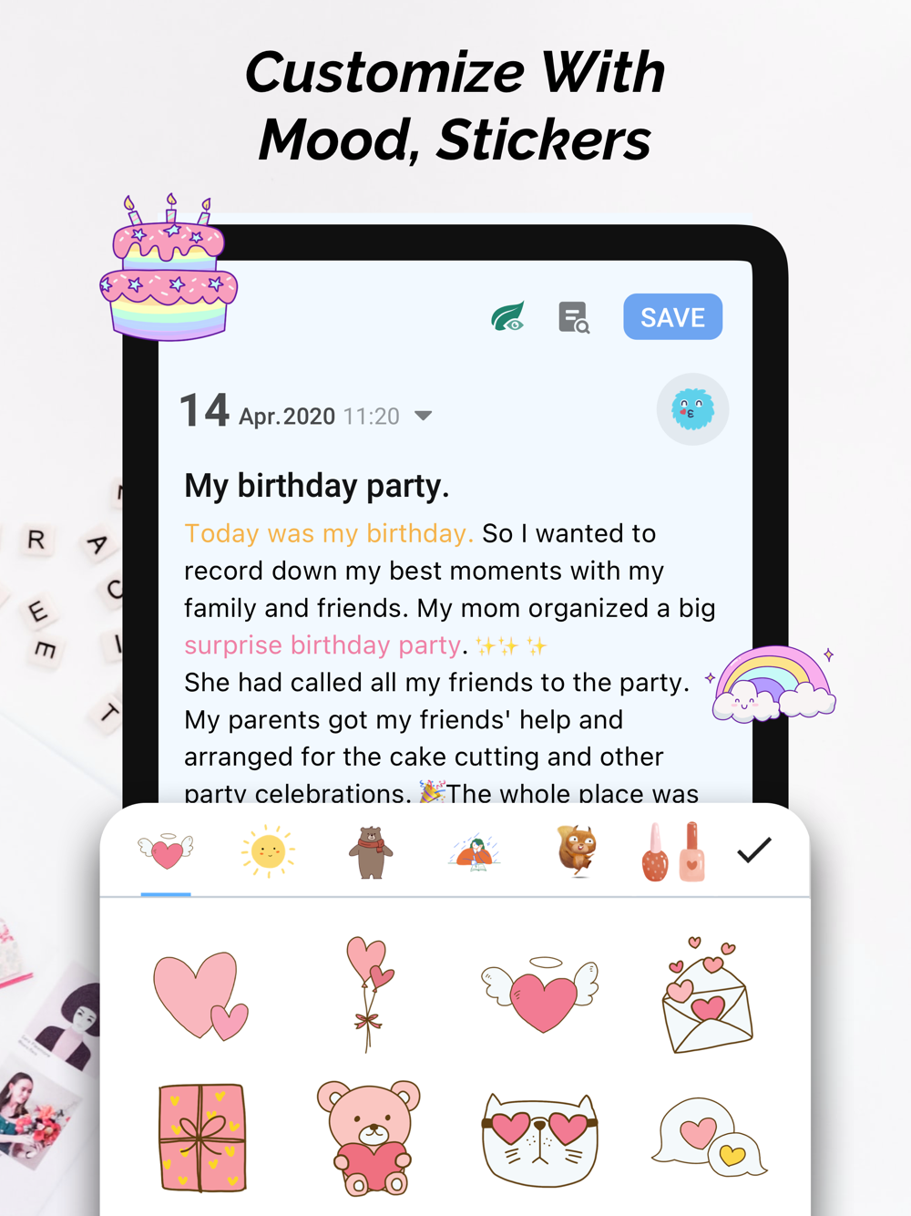 * It provides beautiful diary themes. Add enjoyment to every moment of daily journaling