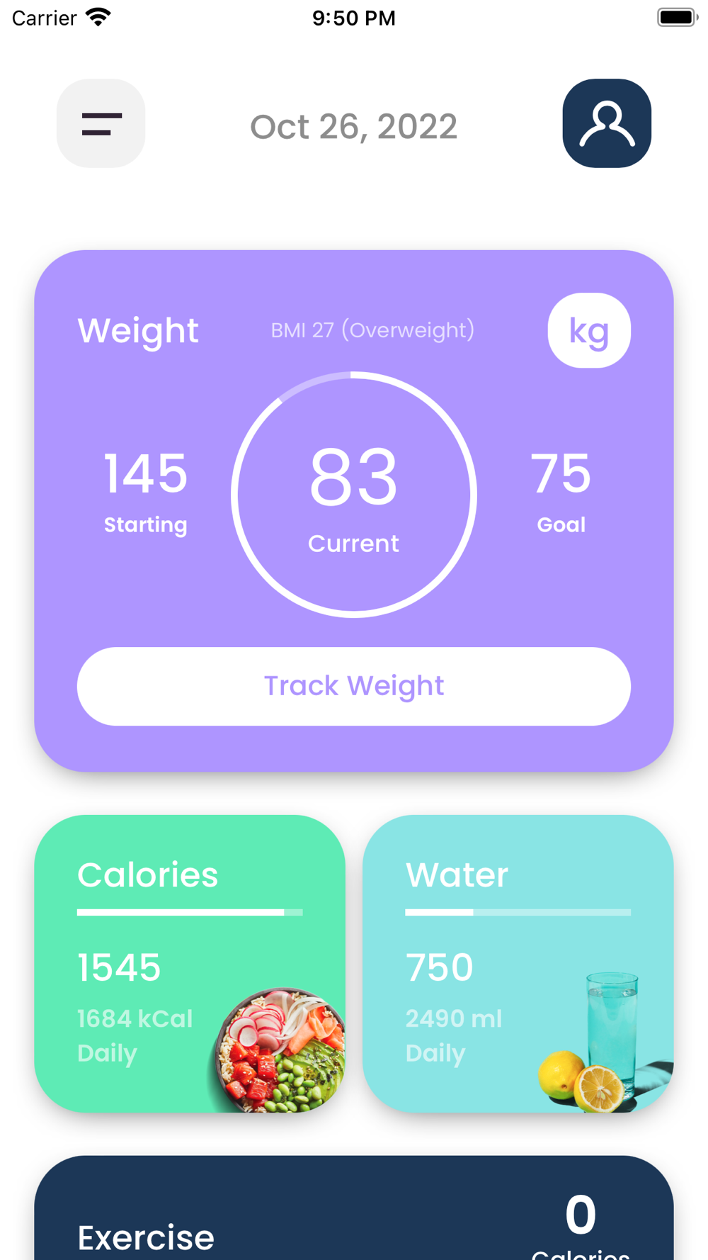 • Quick food logging and tracking.