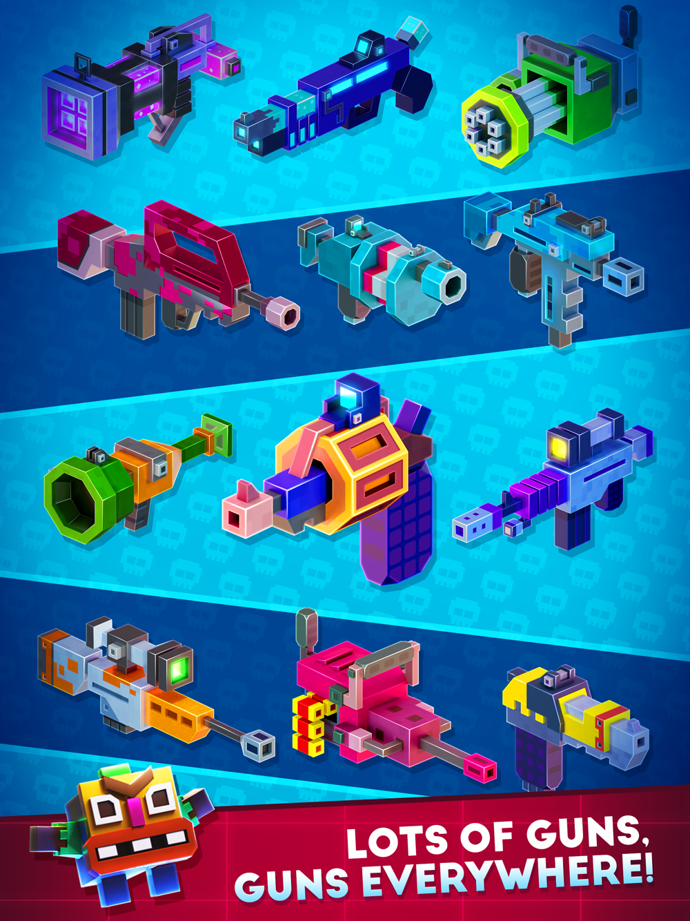 -… and GUNS… Lots of guns. You got sniper guns, machine guns, assault guns, laser guns, bazooka guns… if you find a special gun? KEEP IT!